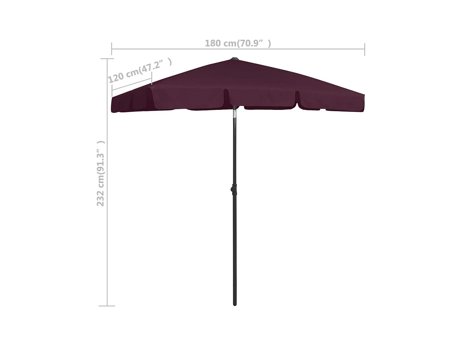 Guarda-sol de praia 180x120 cm bordô