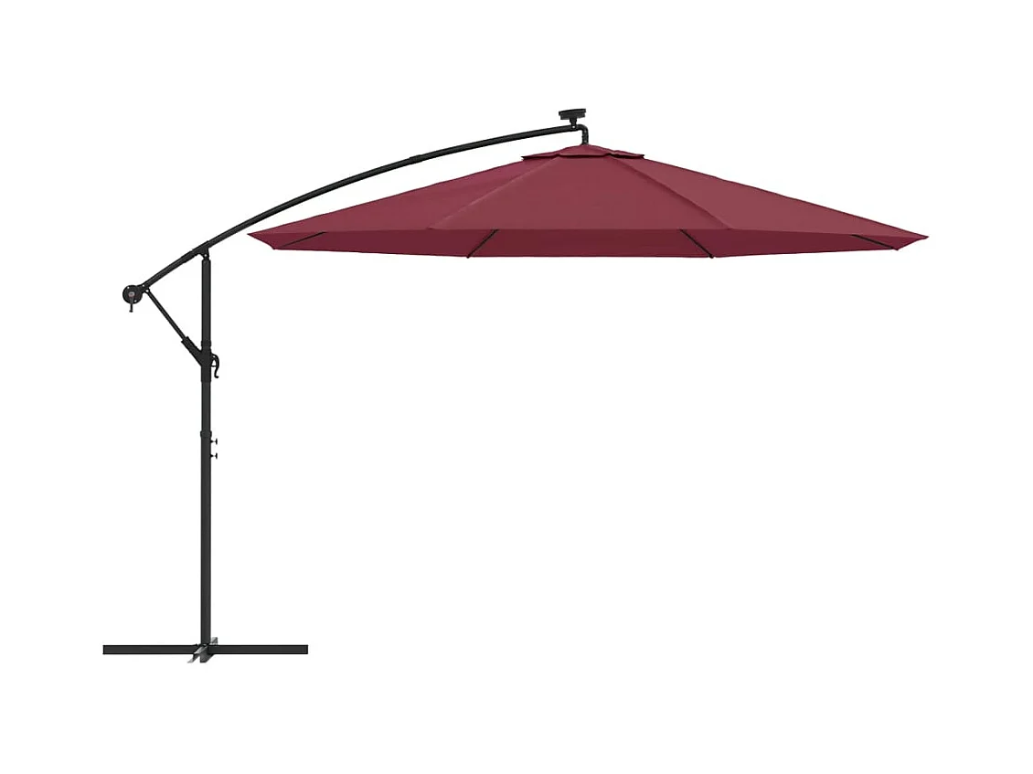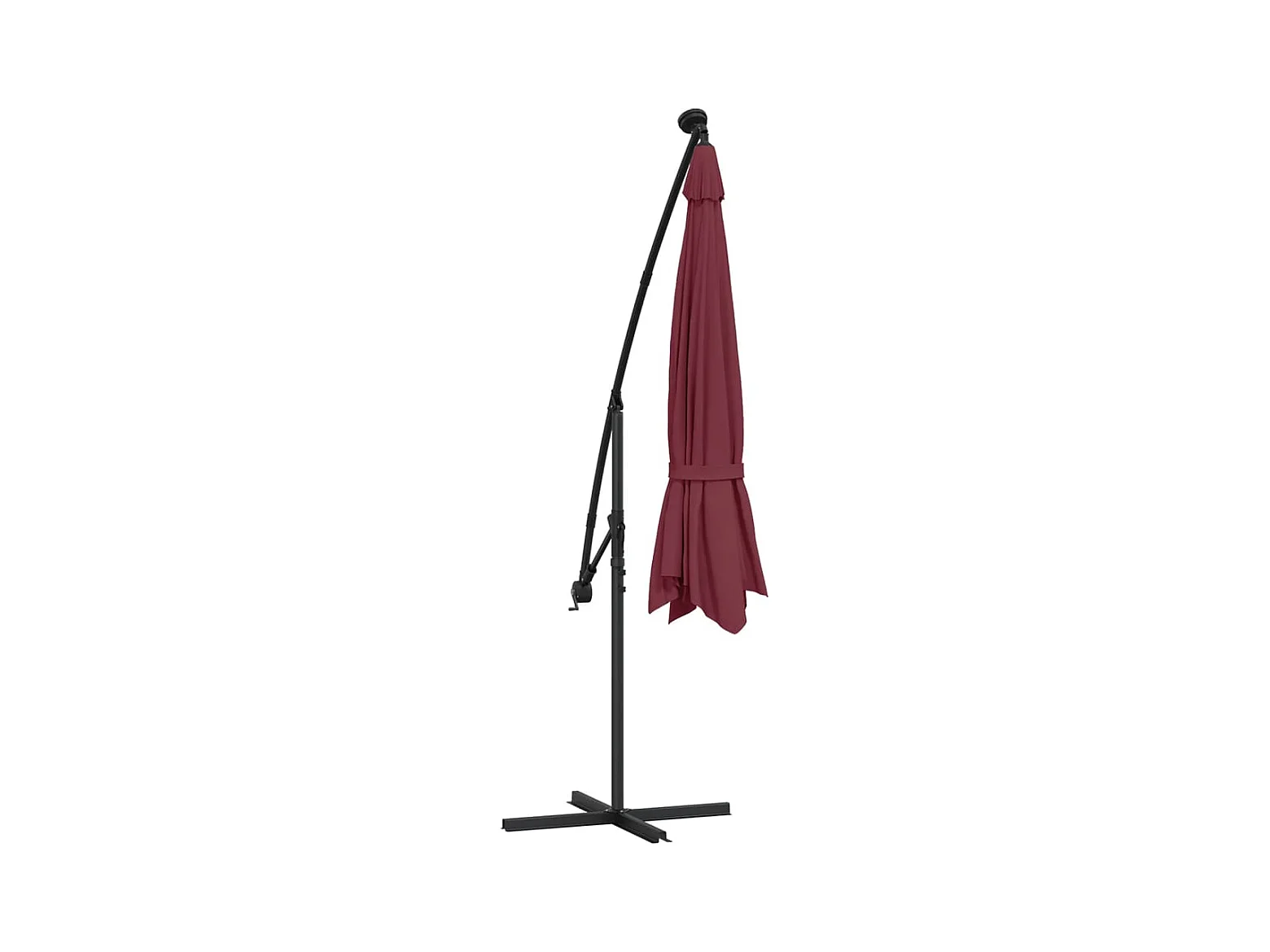 Guarda-sol deslocado com luzes LED vermelho bordô 350 cm 02_0008458