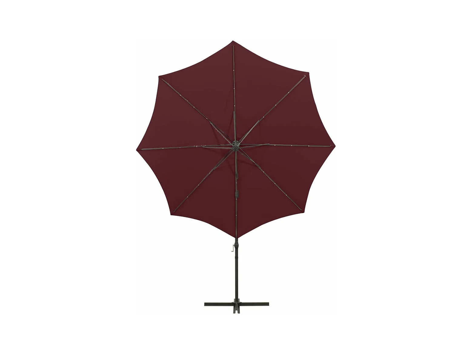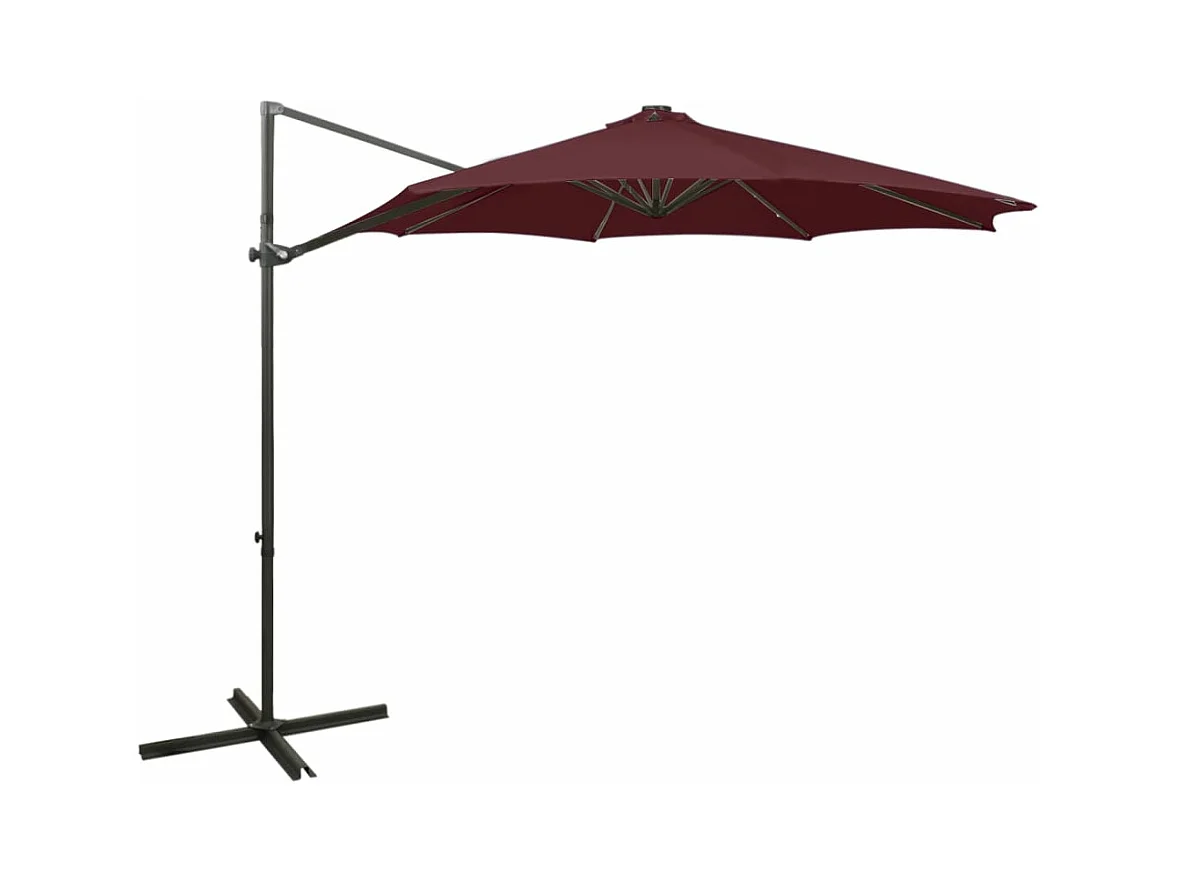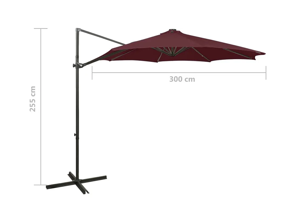 Guarda-sol deslocado com poste e luzes LED vermelho Borgonha 300 cm