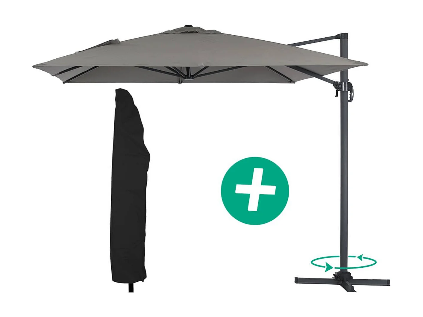 Guarda-sol de jardim offset em alumínio "Sun 4" - Retângulo - 3 x 4 m + Capa protetora - Cinza