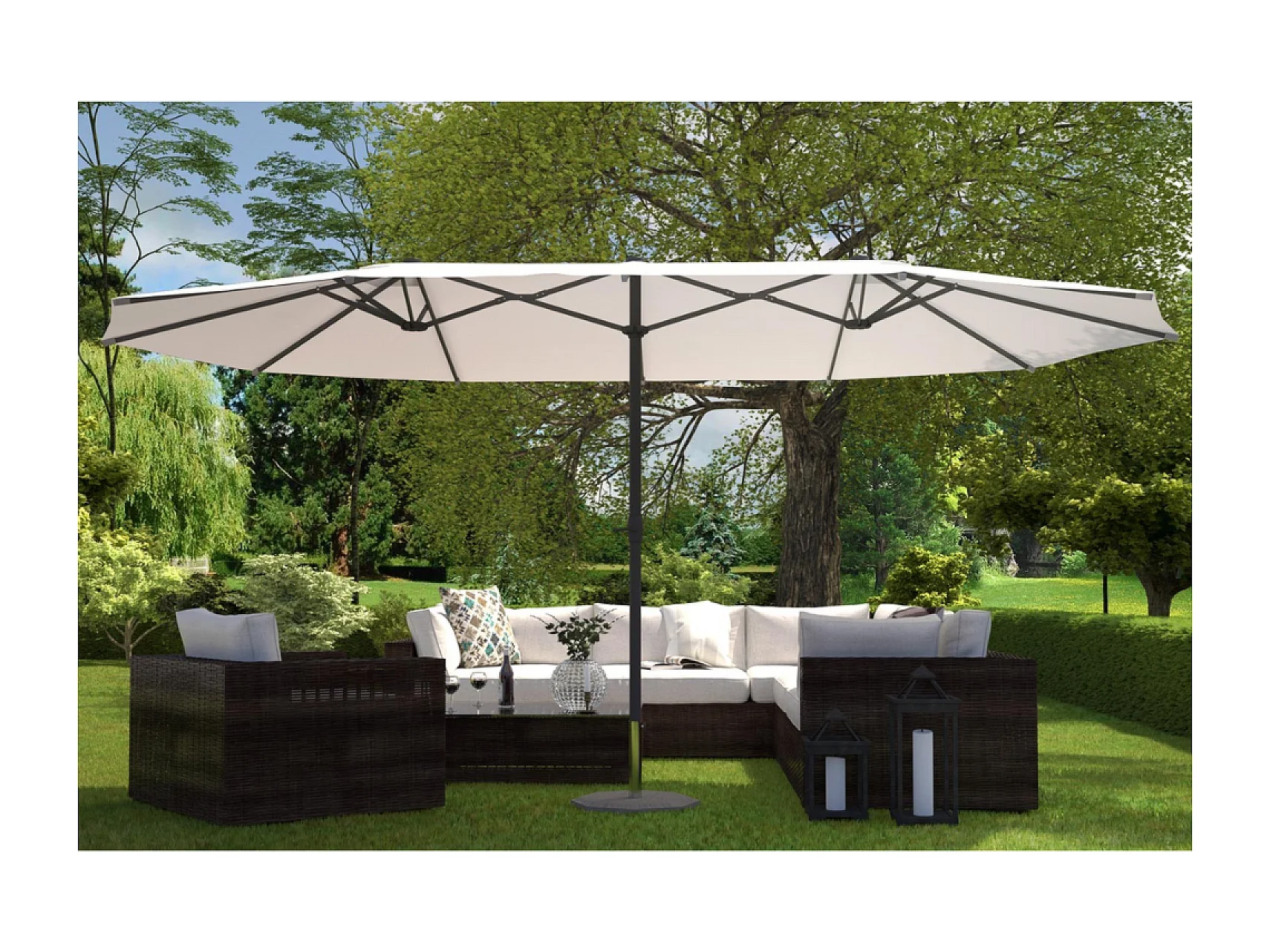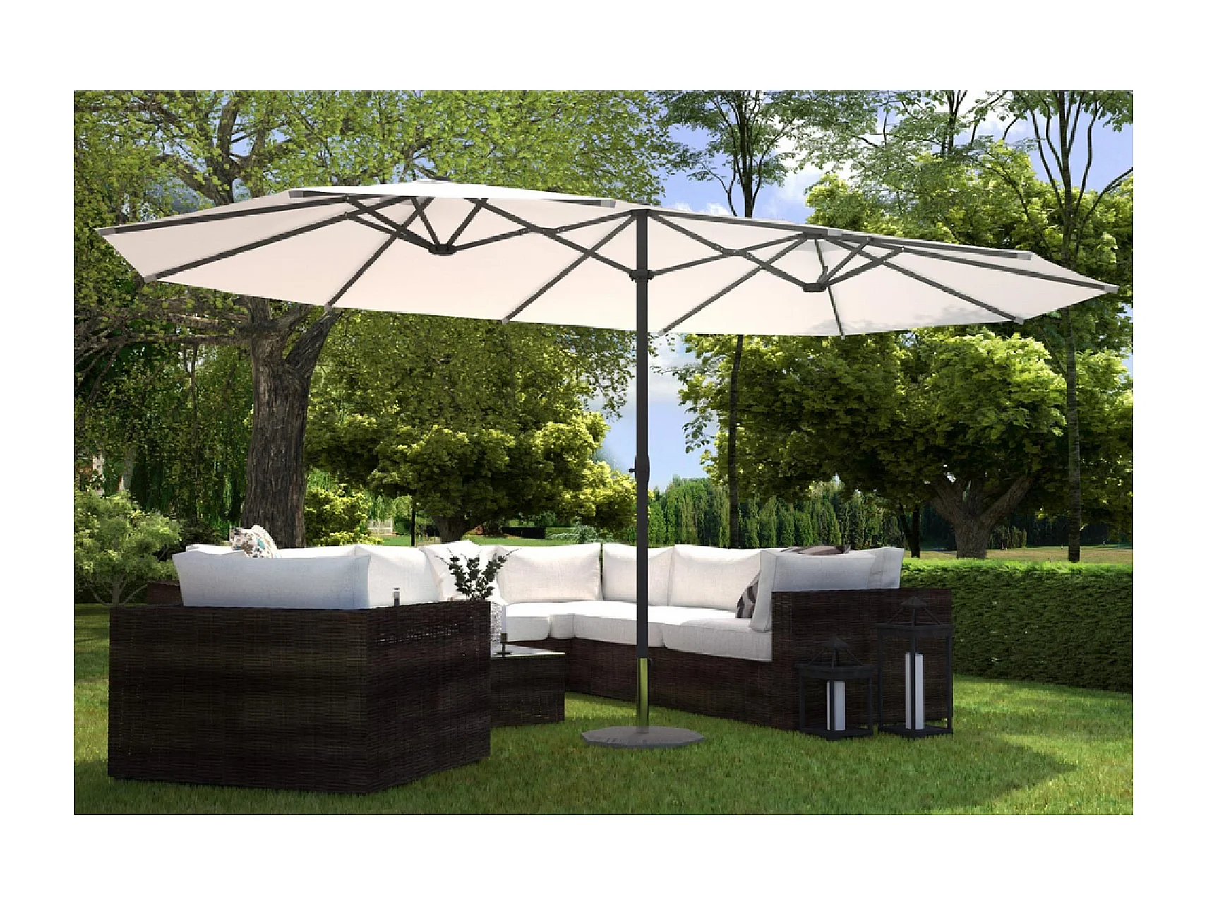 Guarda-sol duplo 2,7 x 4,6m écru VENICE - Poliéster impermeável, manivela, estrutura de aço - Retangular