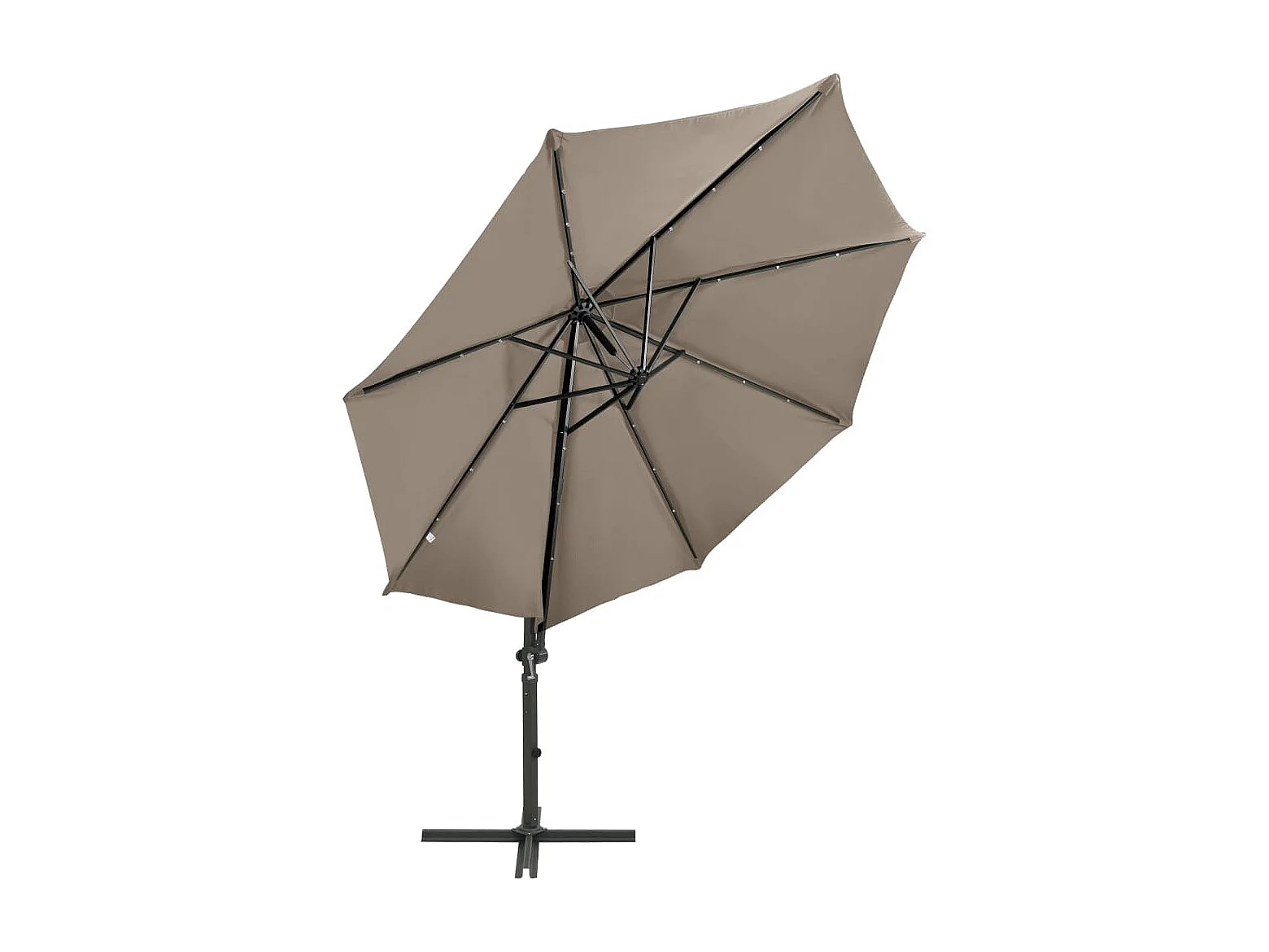 Guarda-sol móvel de jardim deslocado com poste e luzes LED 300 cm cinza 02_0008537
