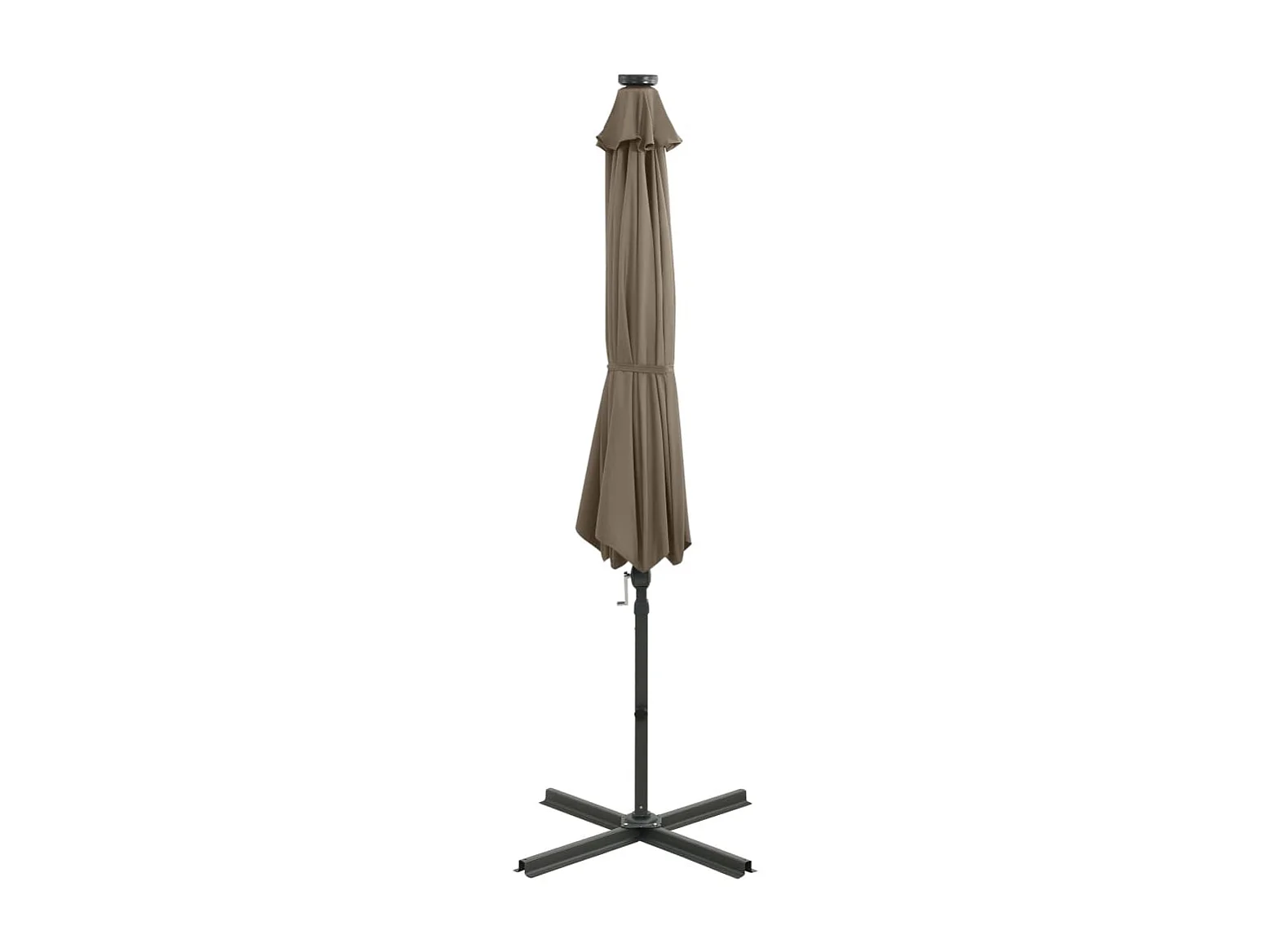 Guarda-sol móvel de jardim deslocado com poste e luzes LED 300 cm cinza 02_0008535