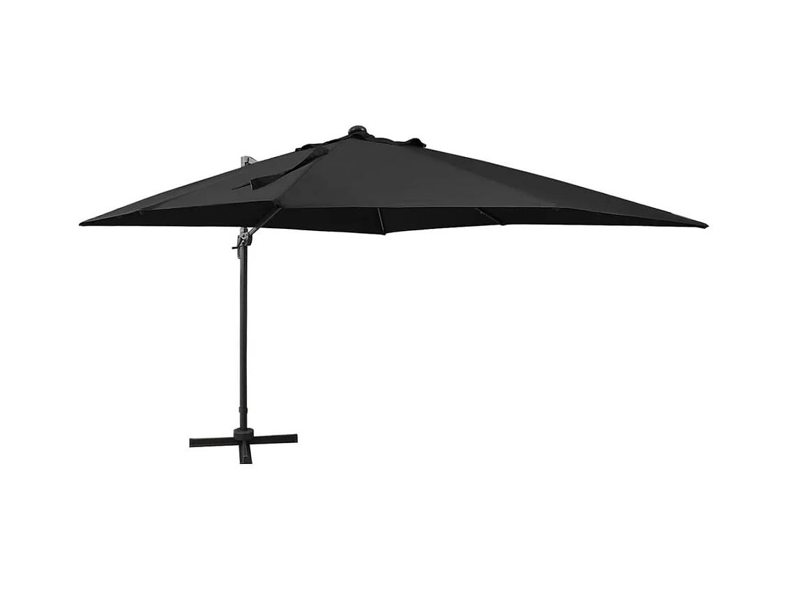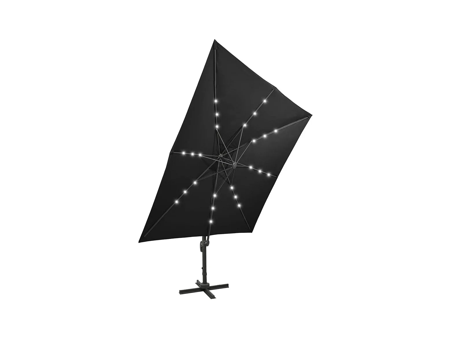 Guarda-sol móvel de jardim deslocado com poste e luzes LED 300 cm preto 02_0008525