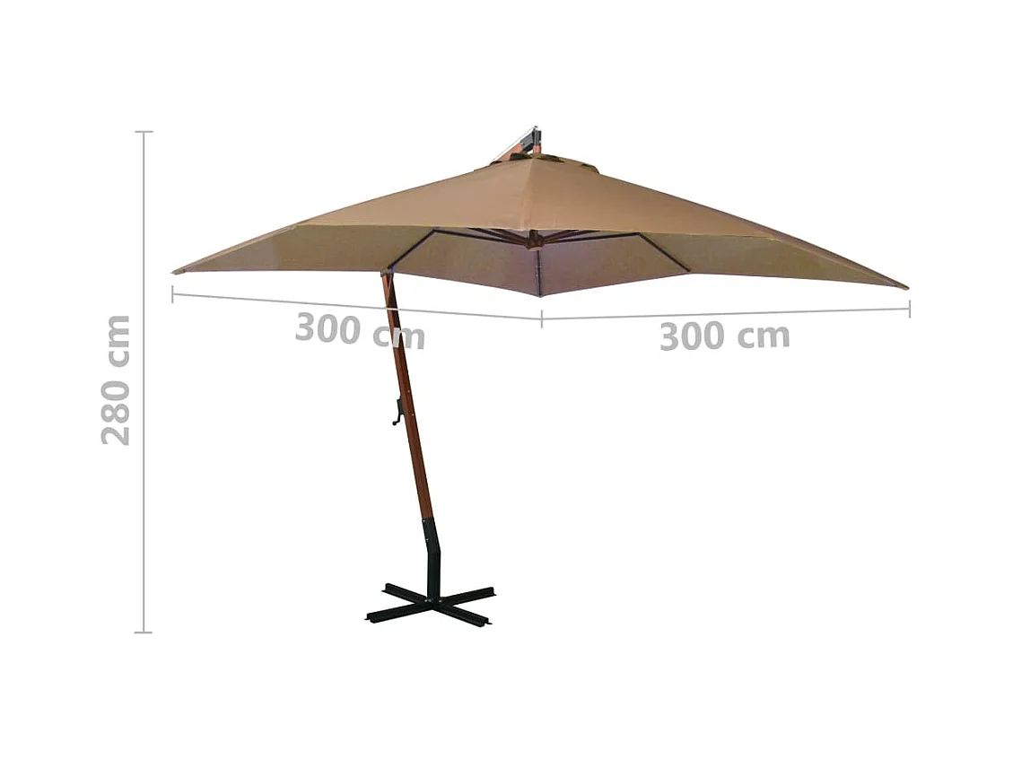 Guarda-sol cantilever com poste de madeira 400x300 cm Taupe