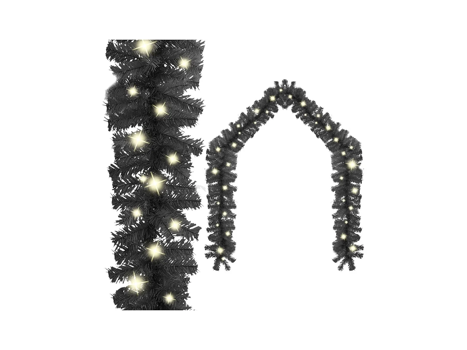 Guirlanda de Natal com luzes LED Preto 60 cm PVC