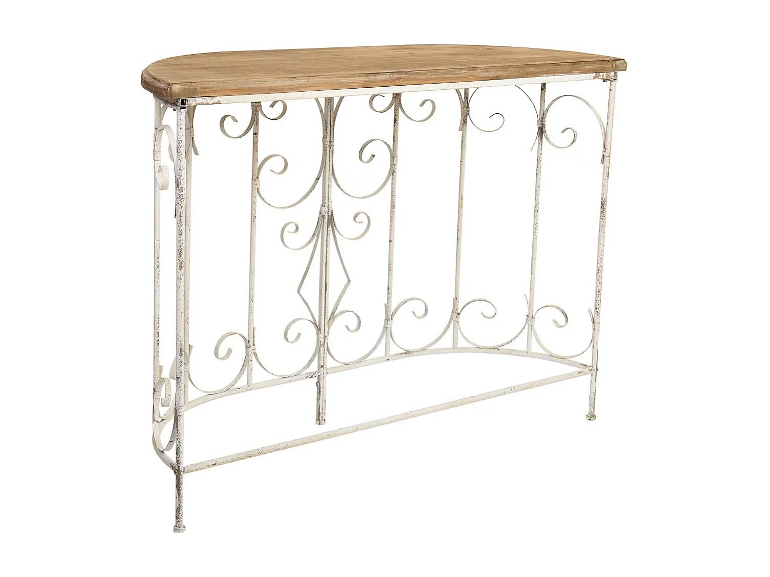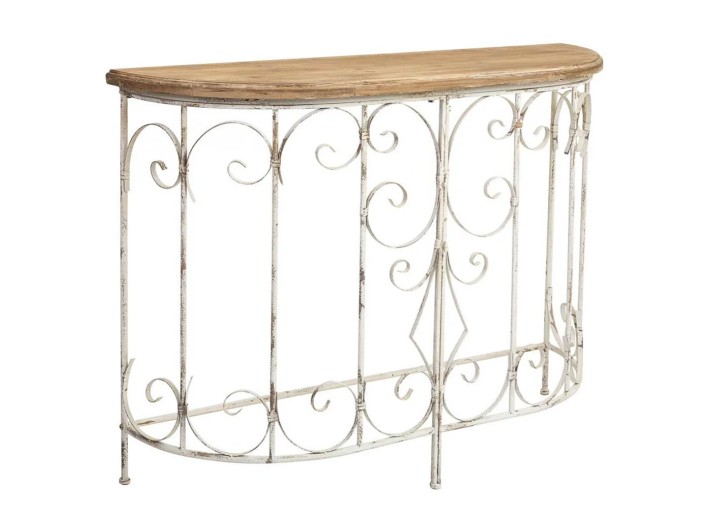 Hall de entrada em madeira e metal com acabamento envelhecido.