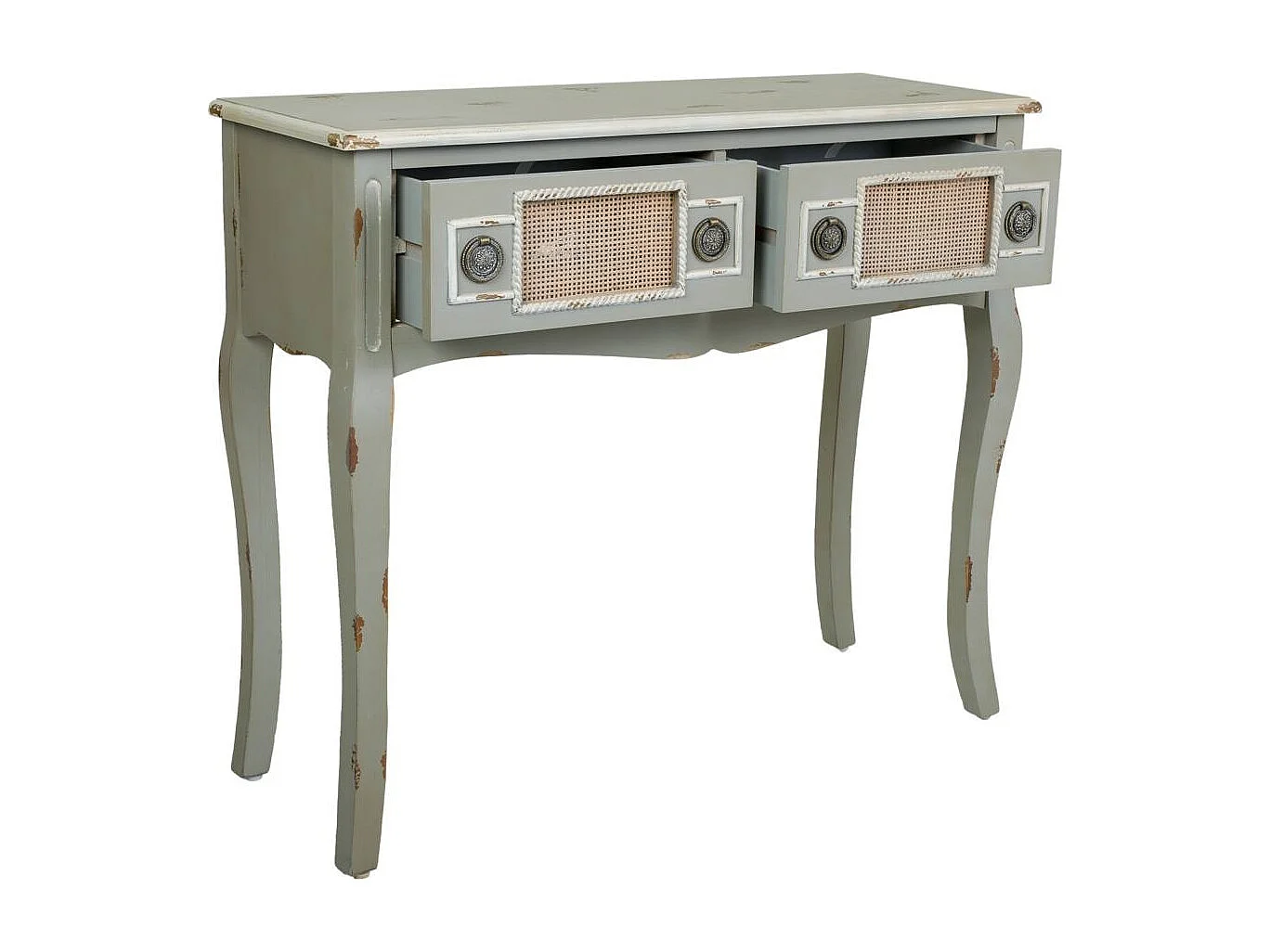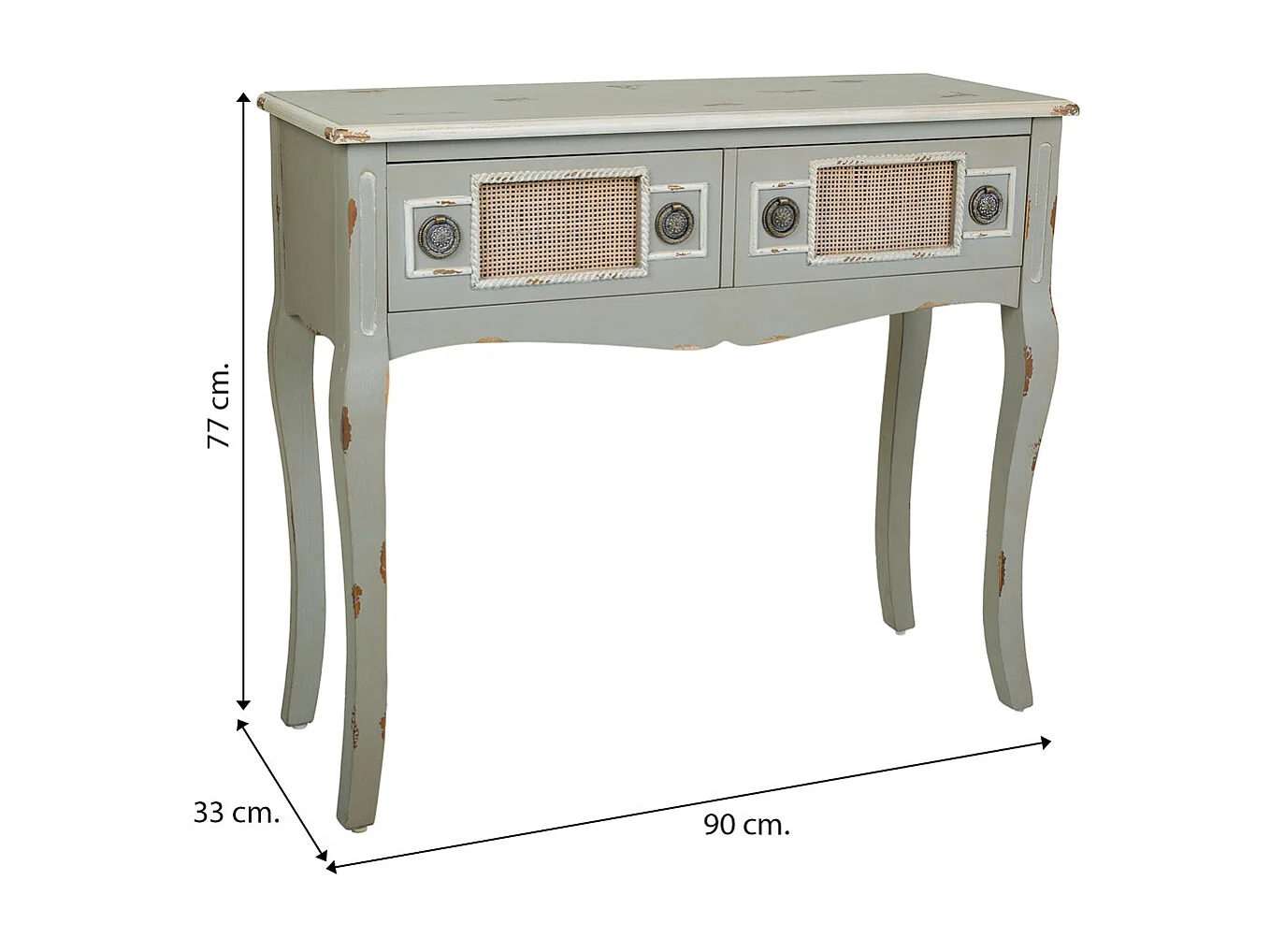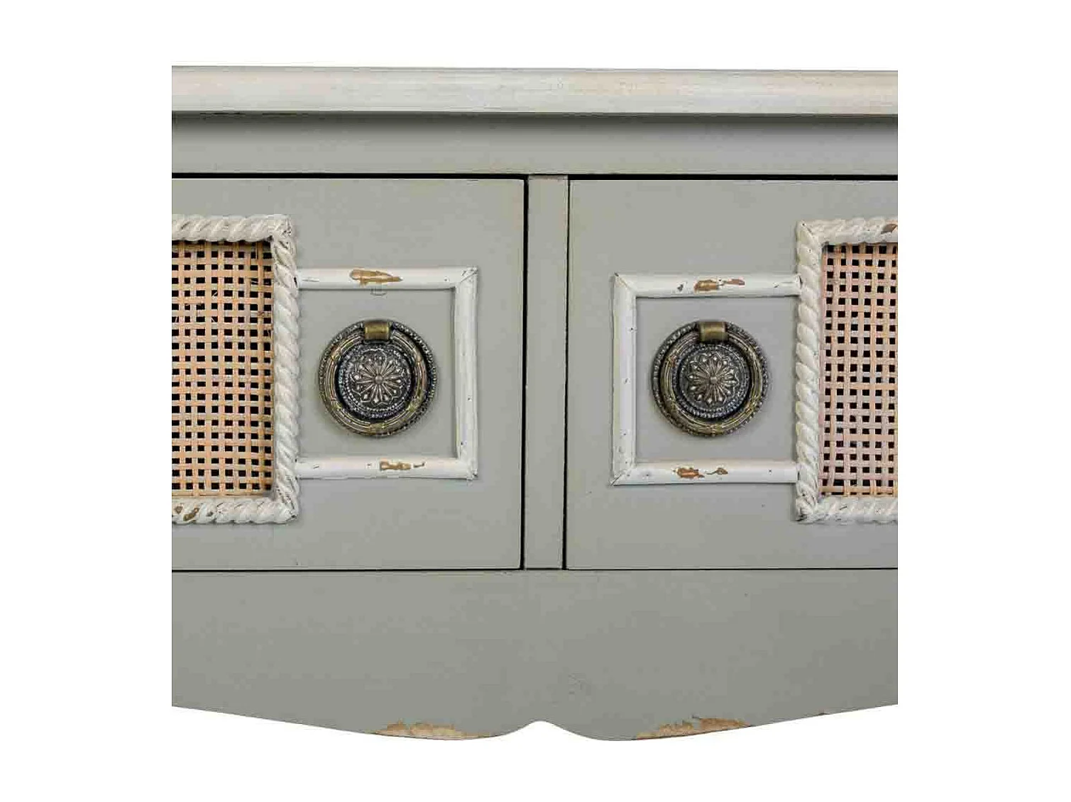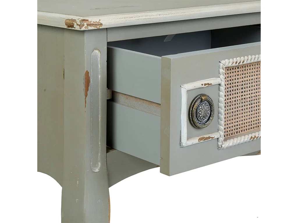 Aparador de entrada madeira e rejilla bambu cinza 90x33x77