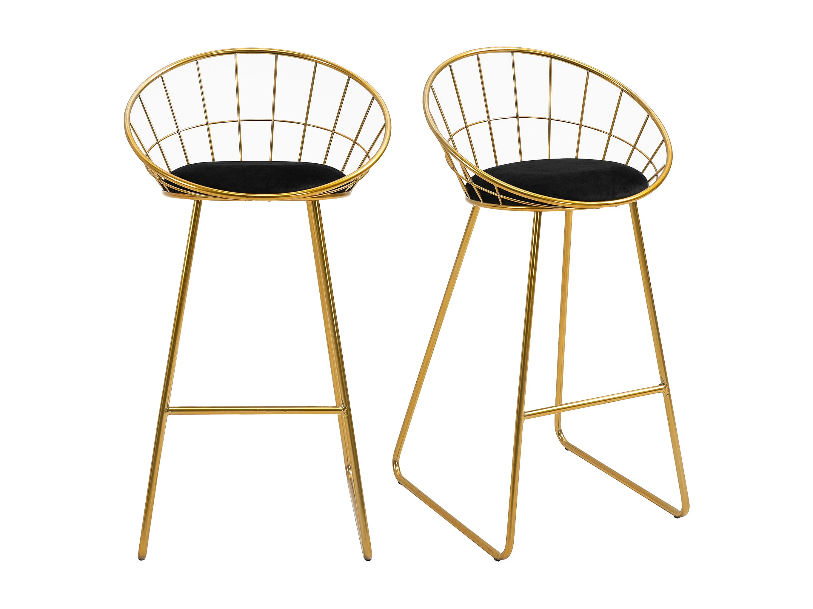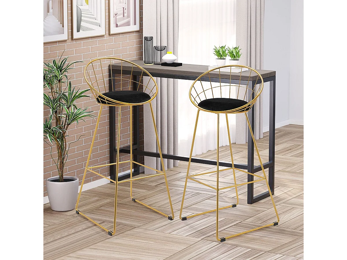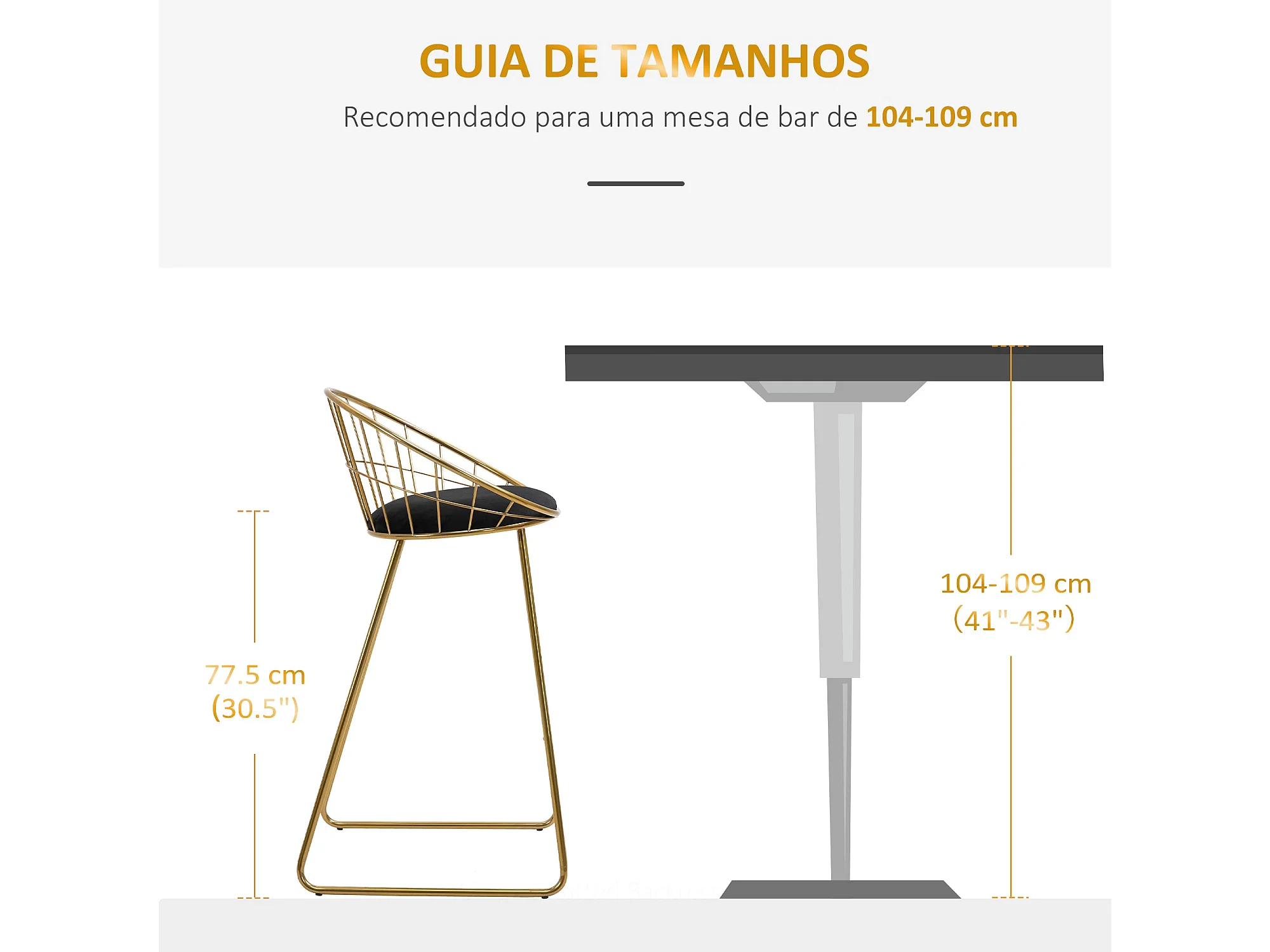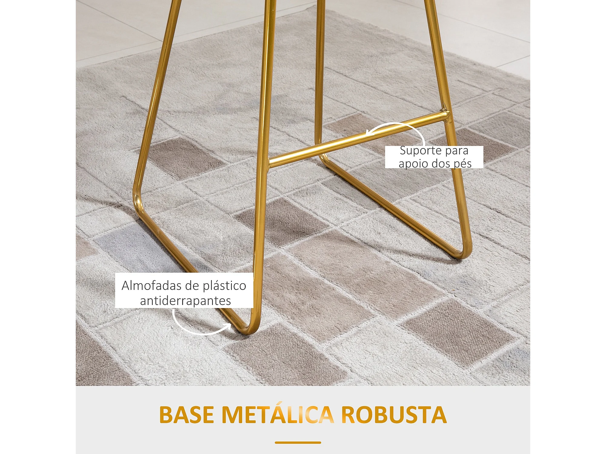 HOMCOM Conjunto de 2 Bancos Altos de Cozinha Dourados com Assento Aveludado para Sala de Jantar