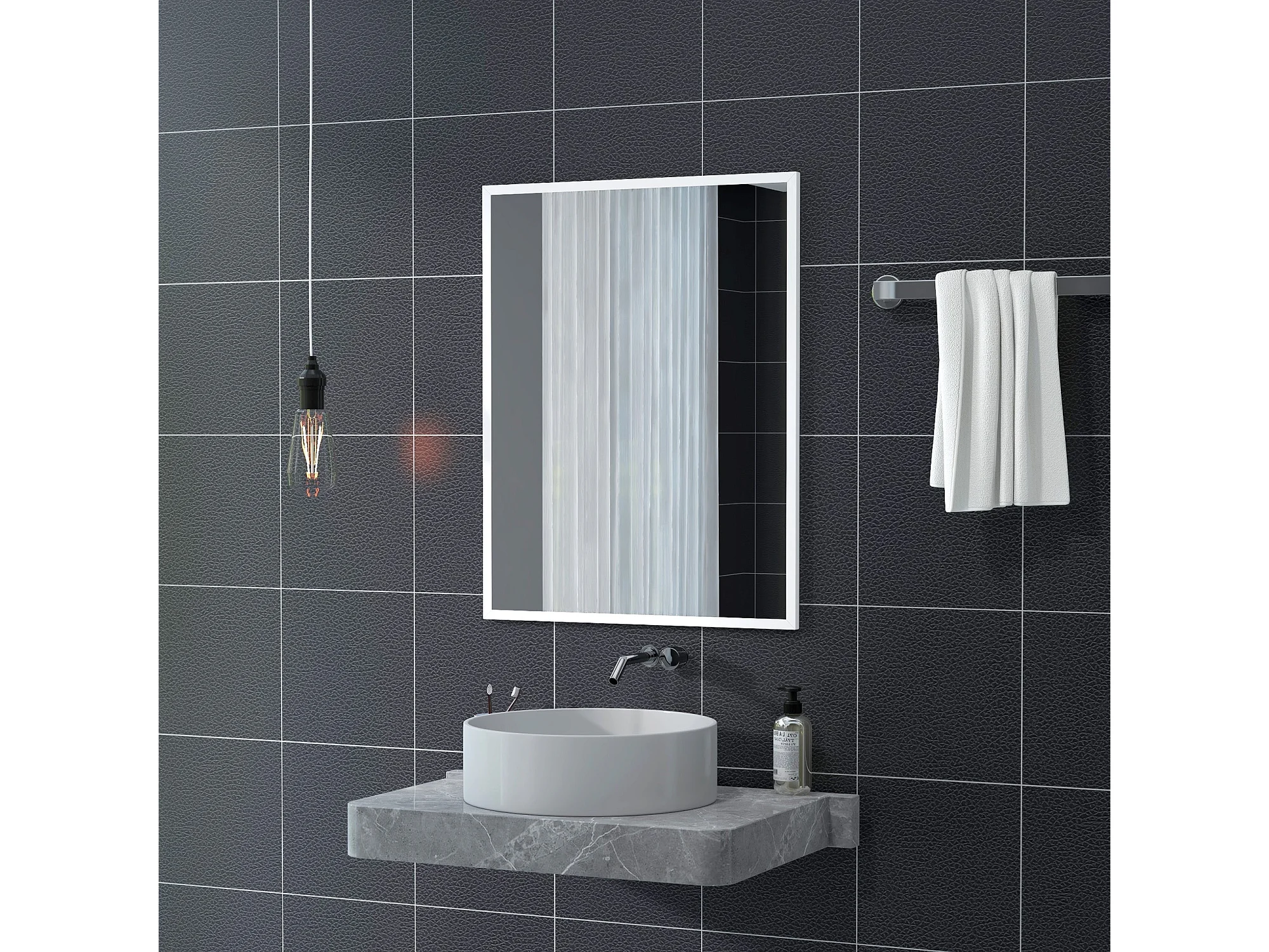 HOMCOM Espelho de Parede Decorativo 70x90 cm Espelho Retangular Espelho de Casa de Banho com 4 Ganchos Metálicos Estilo Moderno para Sala Quarto Entrada Branco