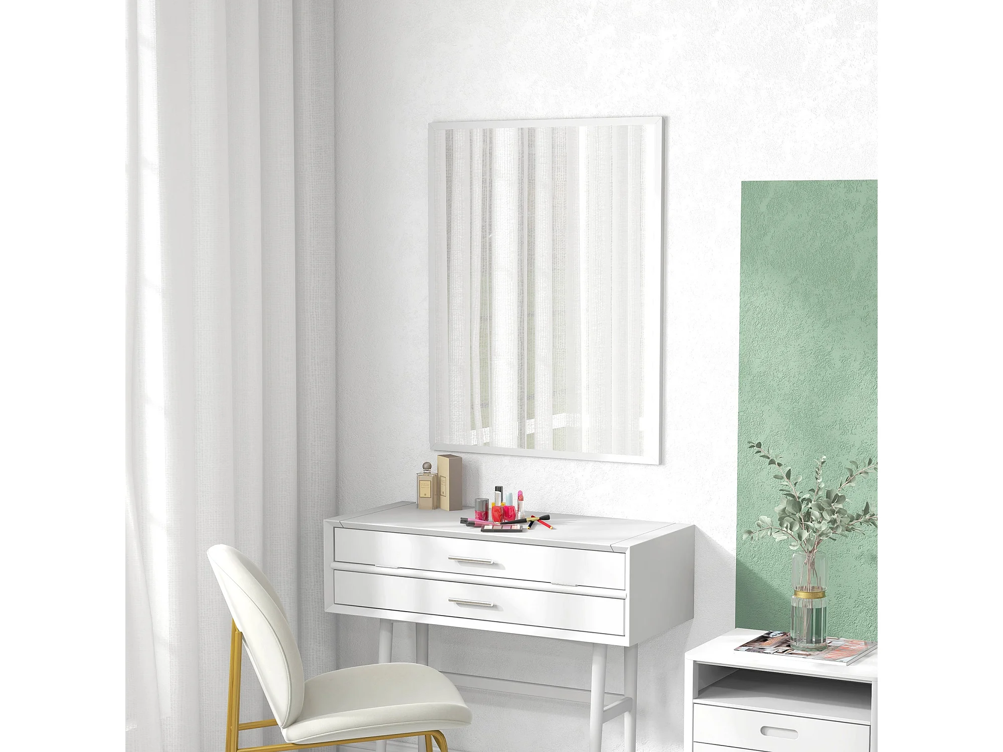 Espelho Moderno "Beyo" Ecológico - 60 x 90 cm - Branco Elegante para Decoração Sofisticada