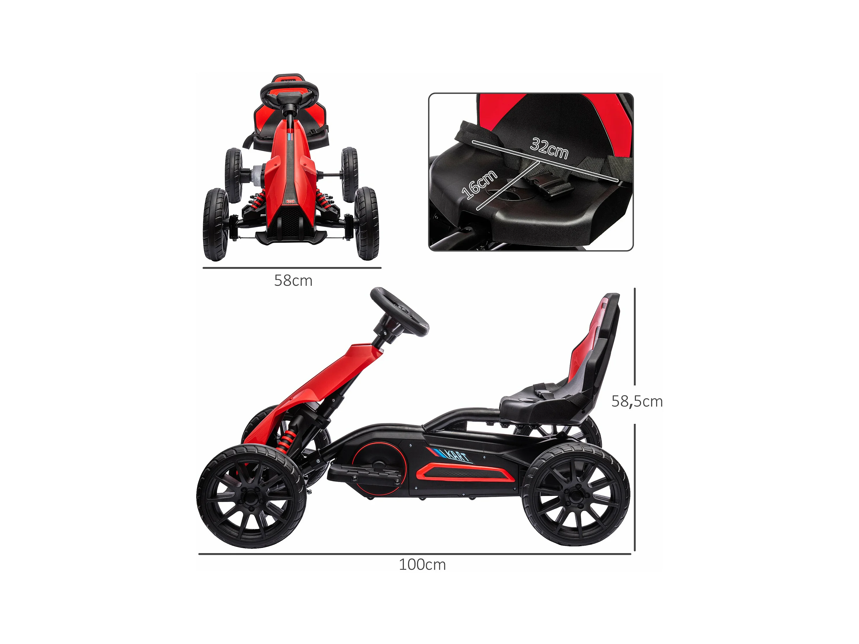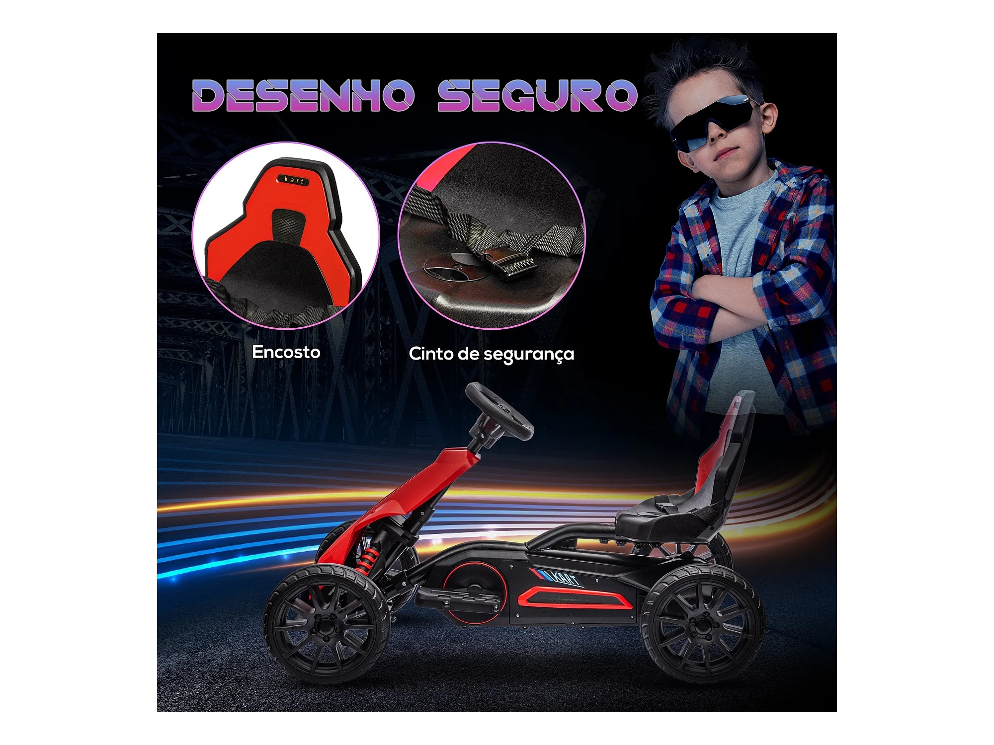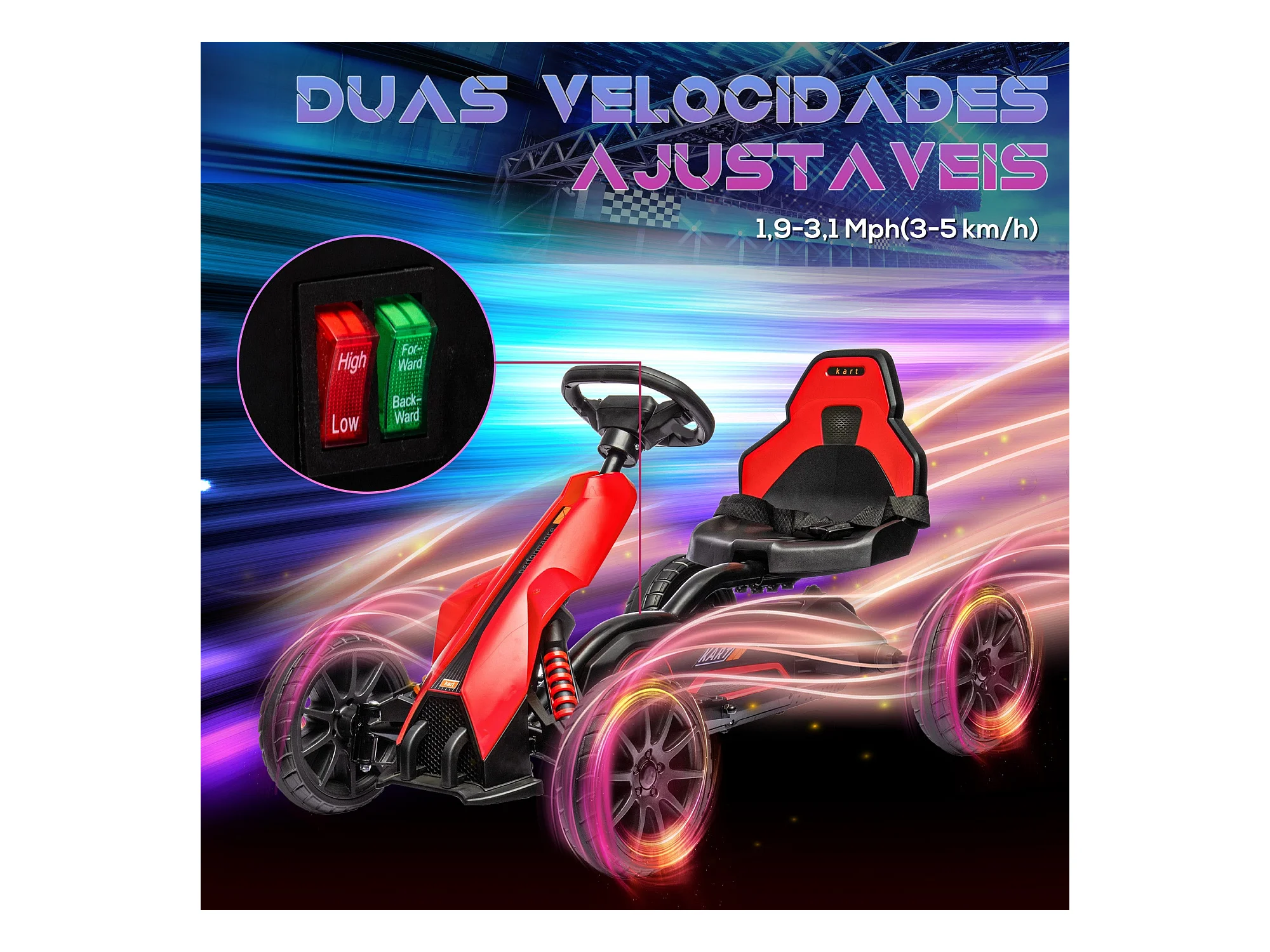 HOMCOM Kart Elétrico Infantil 12V para Crianças de 3 a 8 Anos com Velocidade Ajustável e Cinto de Segurança