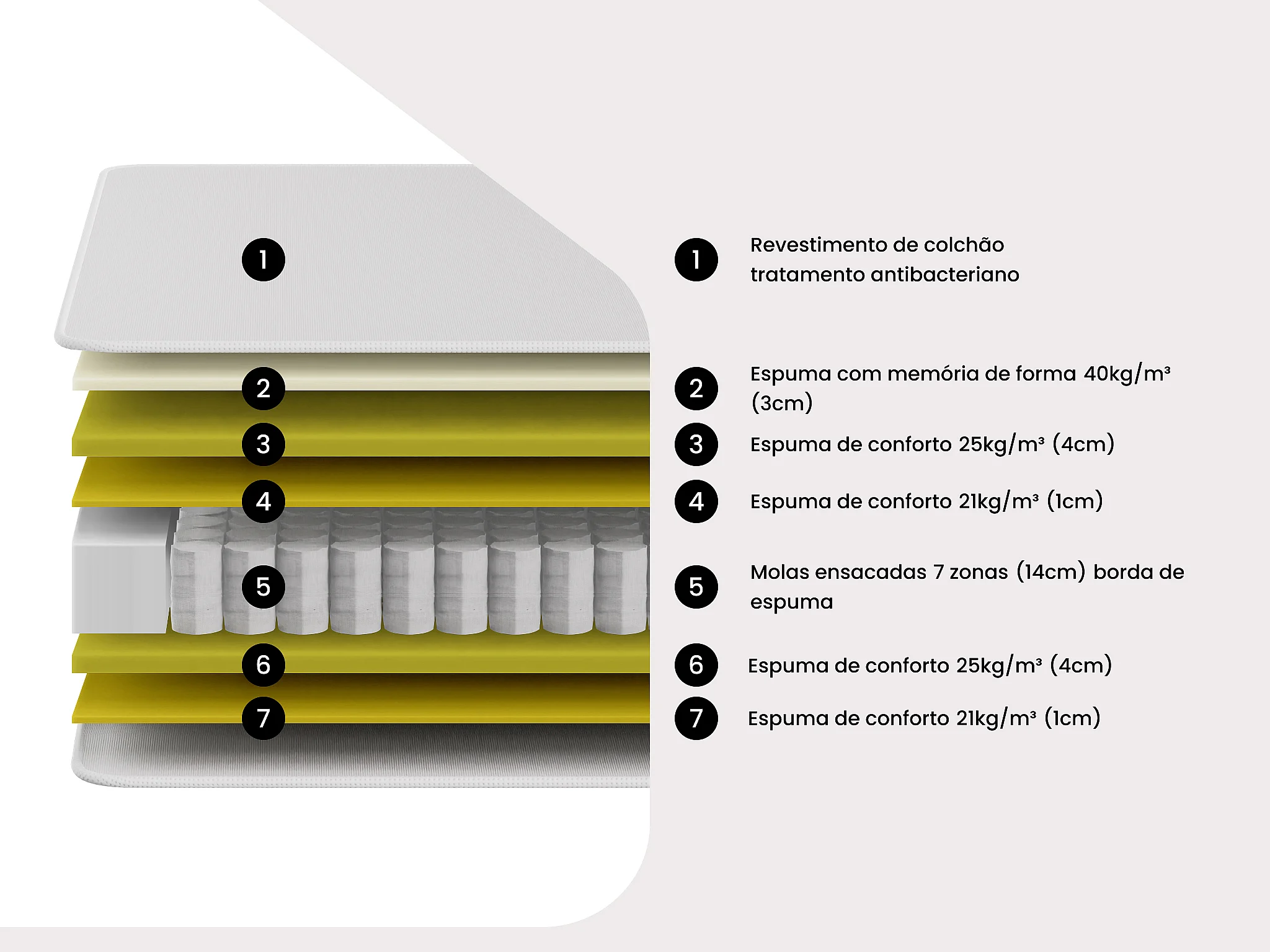 Colchão 200 x 200 cm híbrido com molas ensacadas 7 zonas e espuma viscoelástica 30cm espessura - ILYROS de YSMÉE
