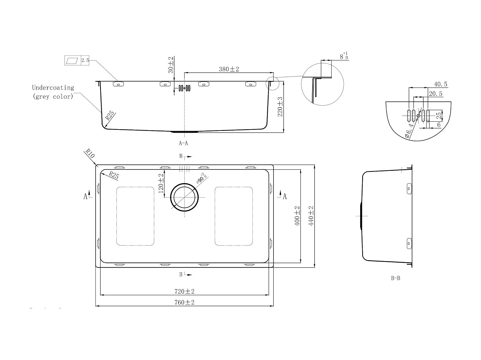Inoxa lava-loiça 1 cuba grande 76x44 em aço inoxidável preto Essebagno
