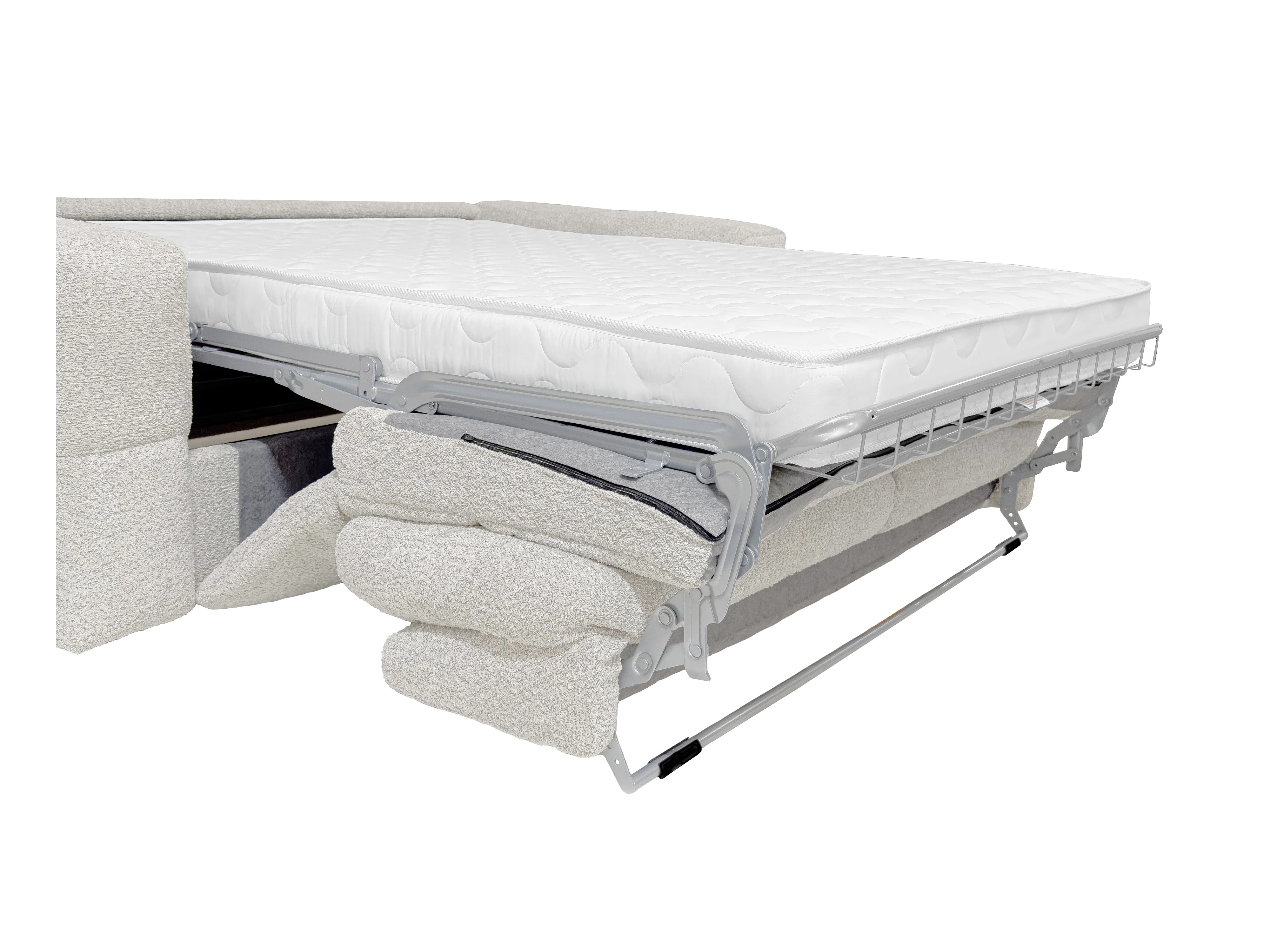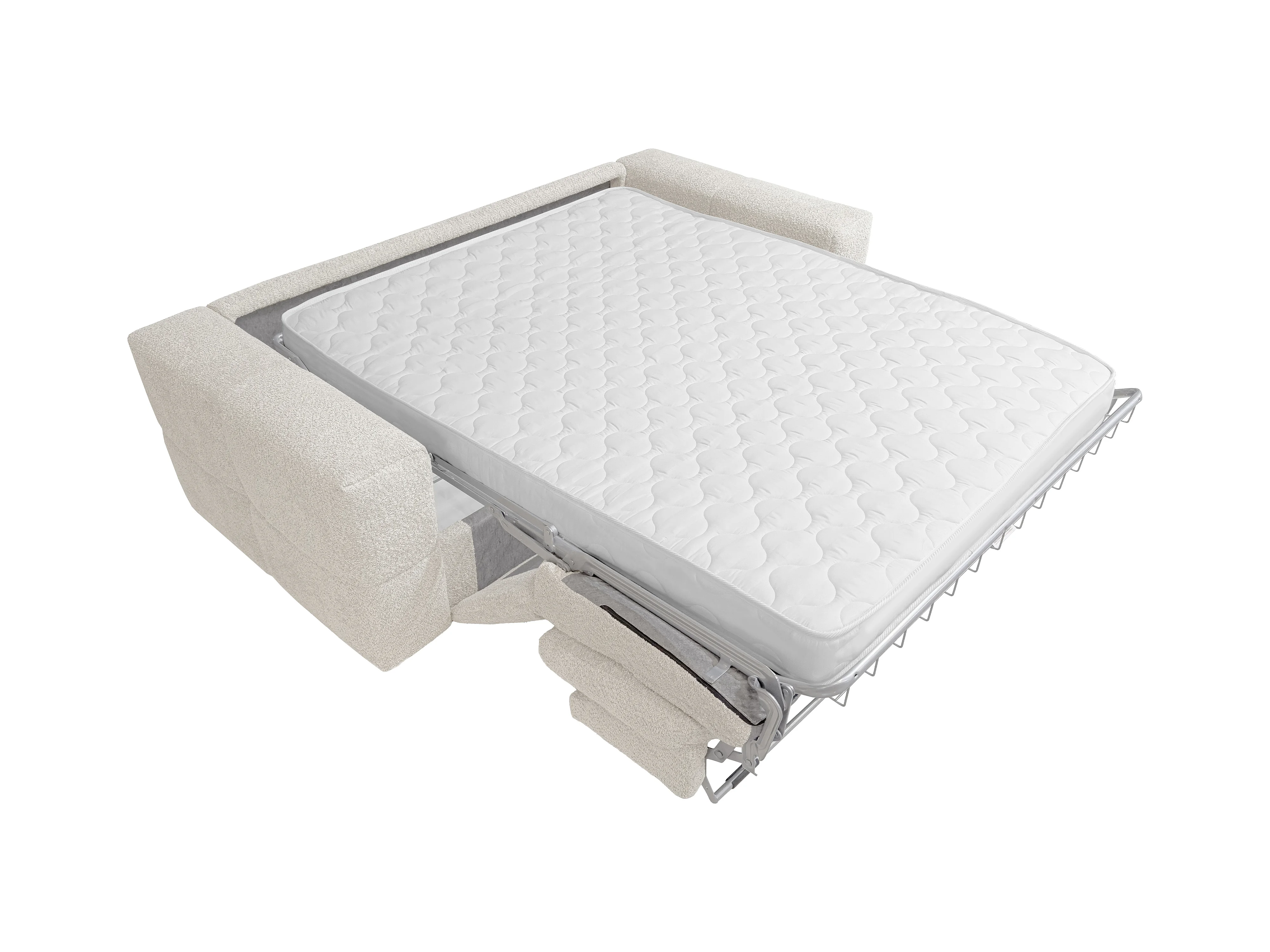 Sofá de 3 lugares convertível abertura rápida em tecido bouclé bege, cama 140 cm e colchão 16 cm - ISSORO
