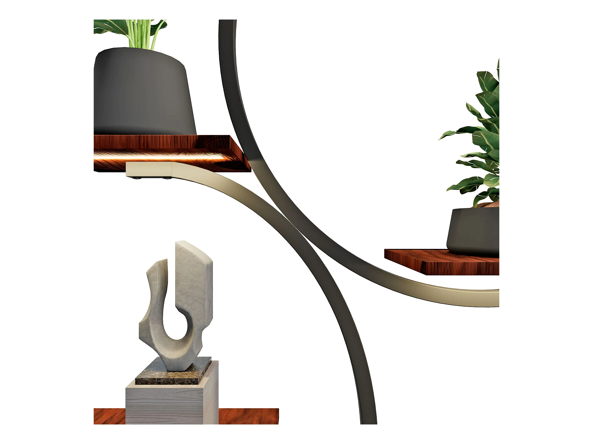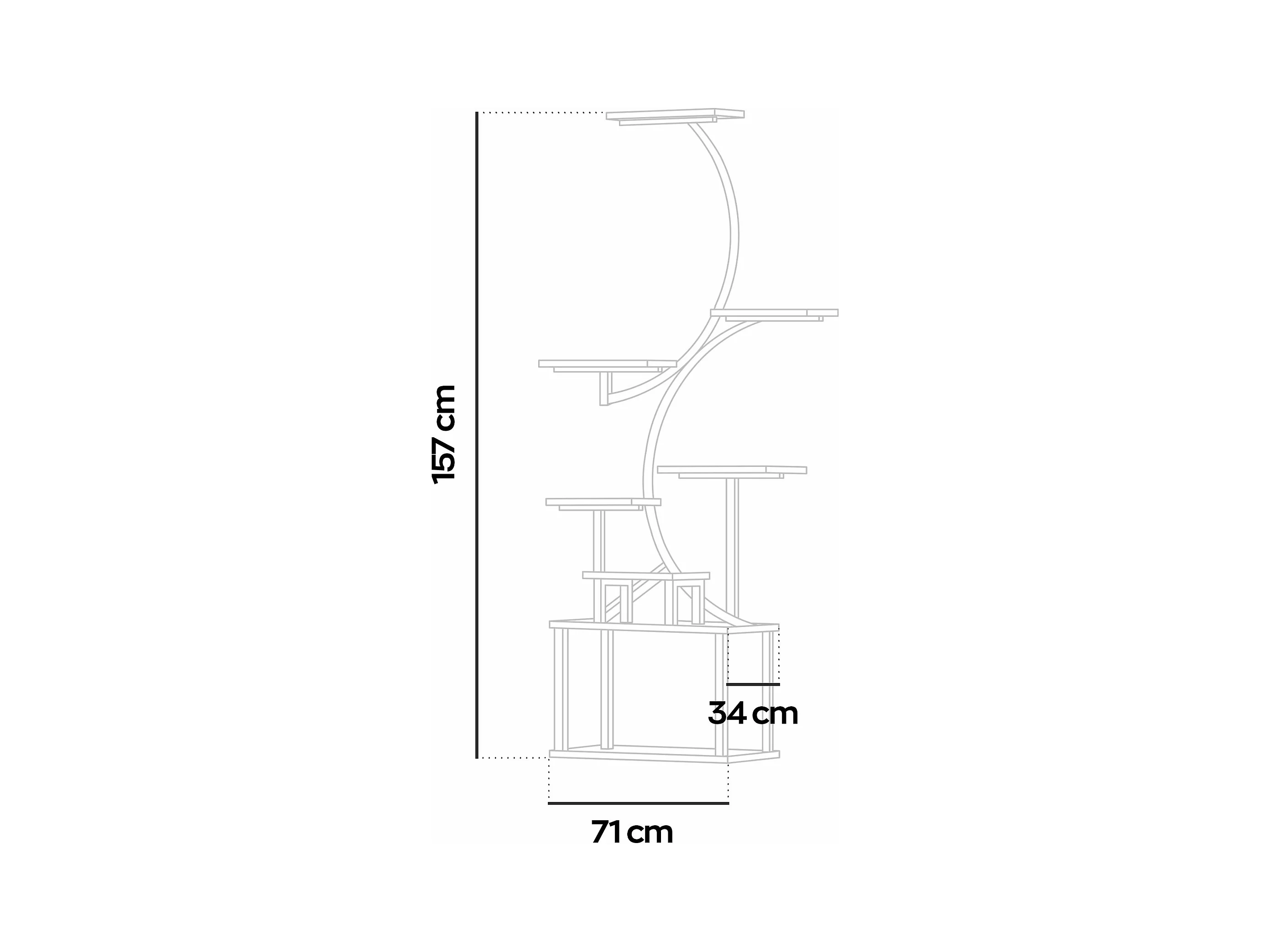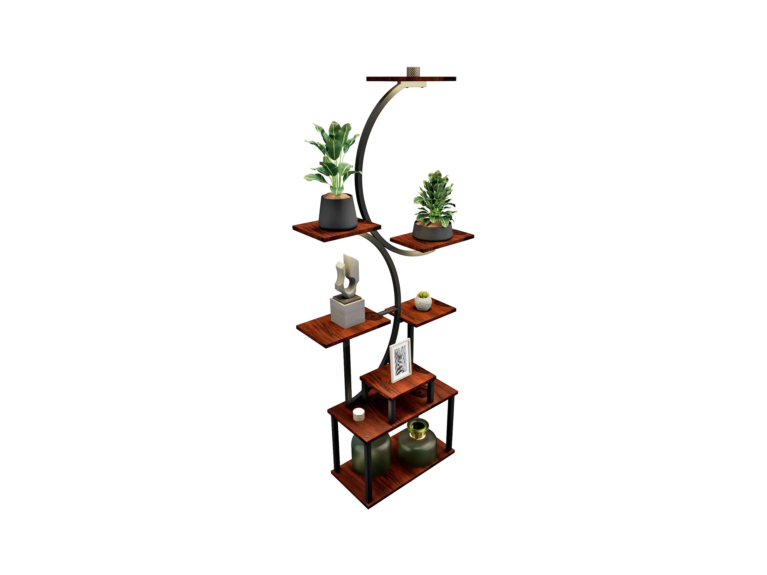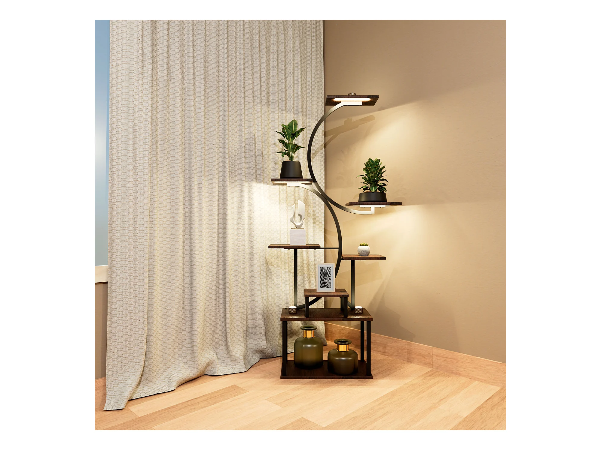 Itaca - Estante de chão de 8 prateleiras para objectos, plantas e flores com luz LED de crescimento, metal e madeira, castanho industrial