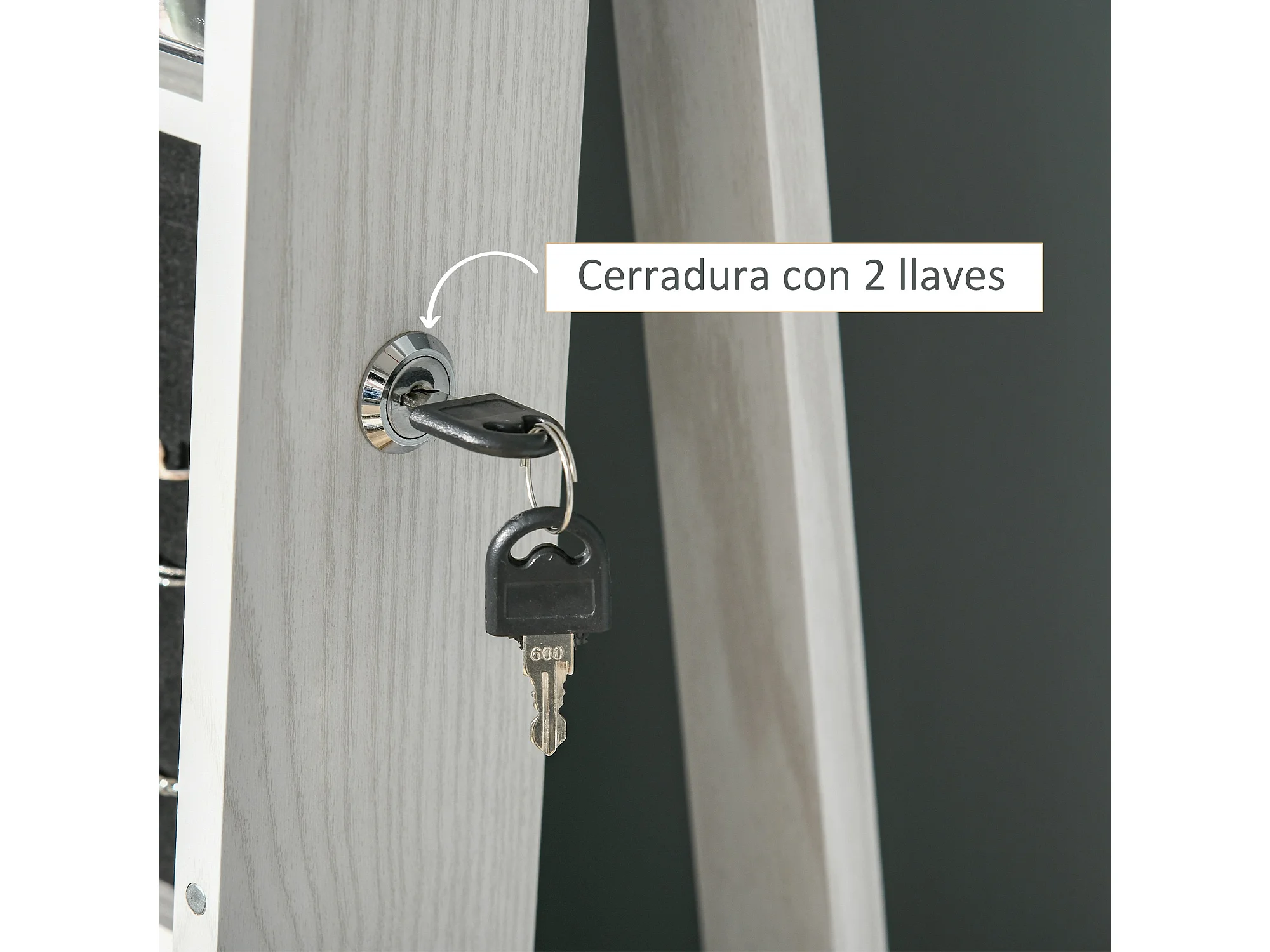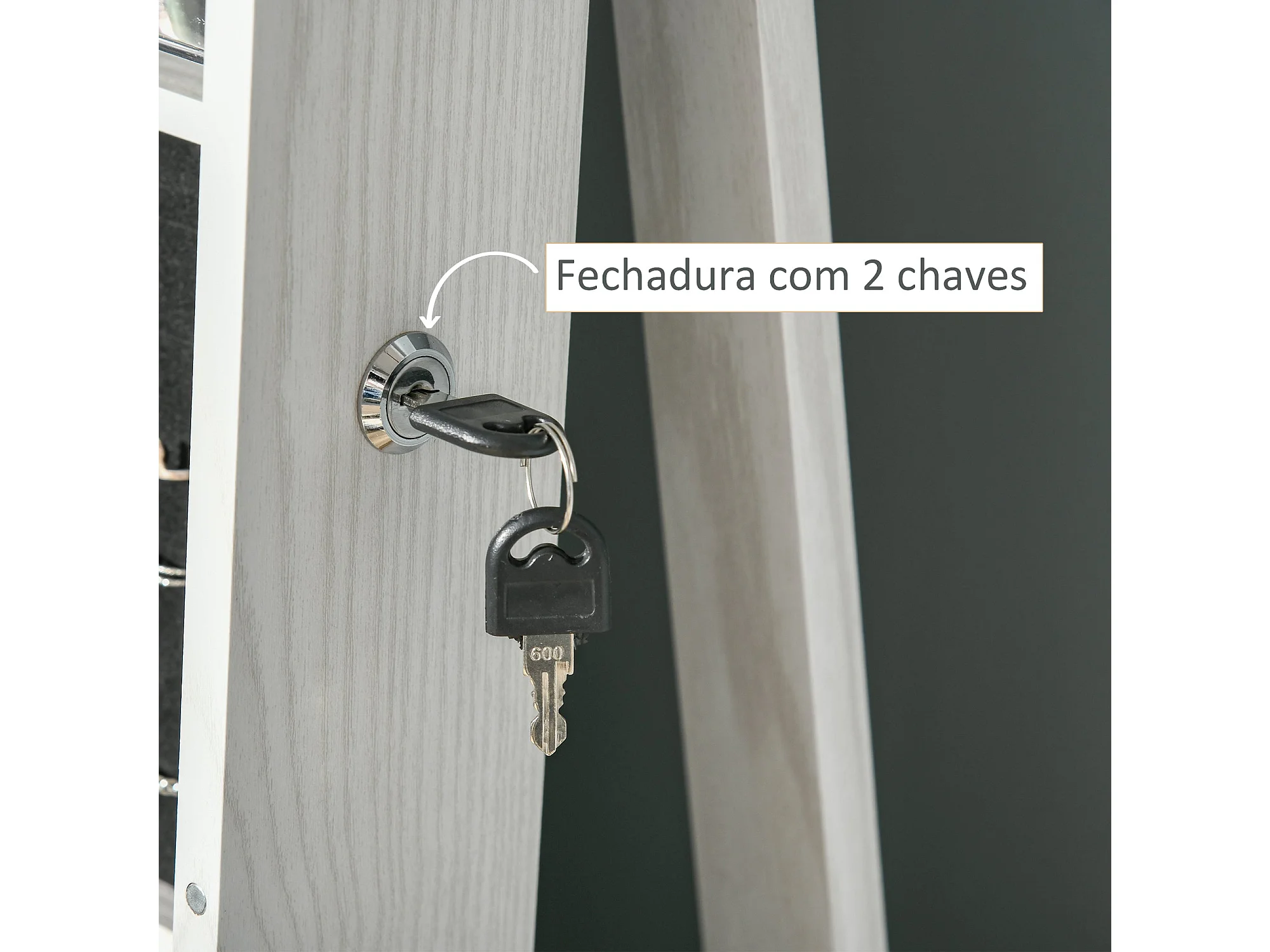 Joalheiro de Pé HOMCOM com Espelho e Fechadura - Organizador de Jóias 360° Branco 38x38x160 cm