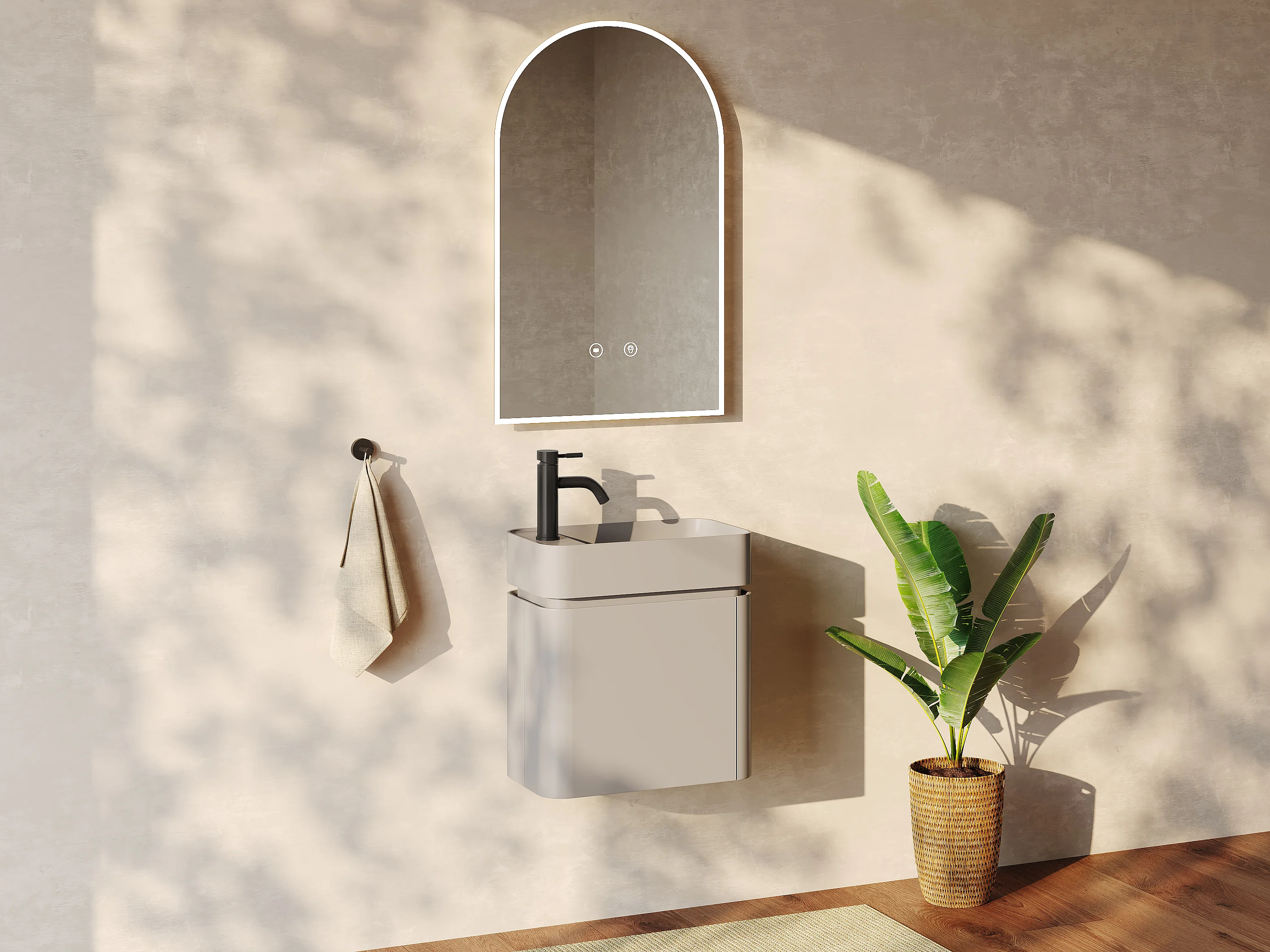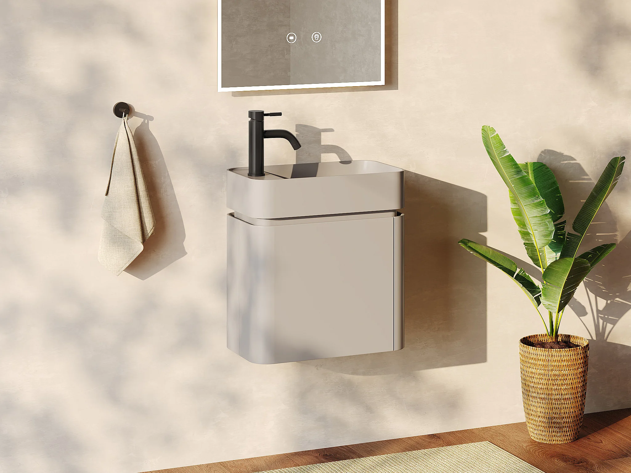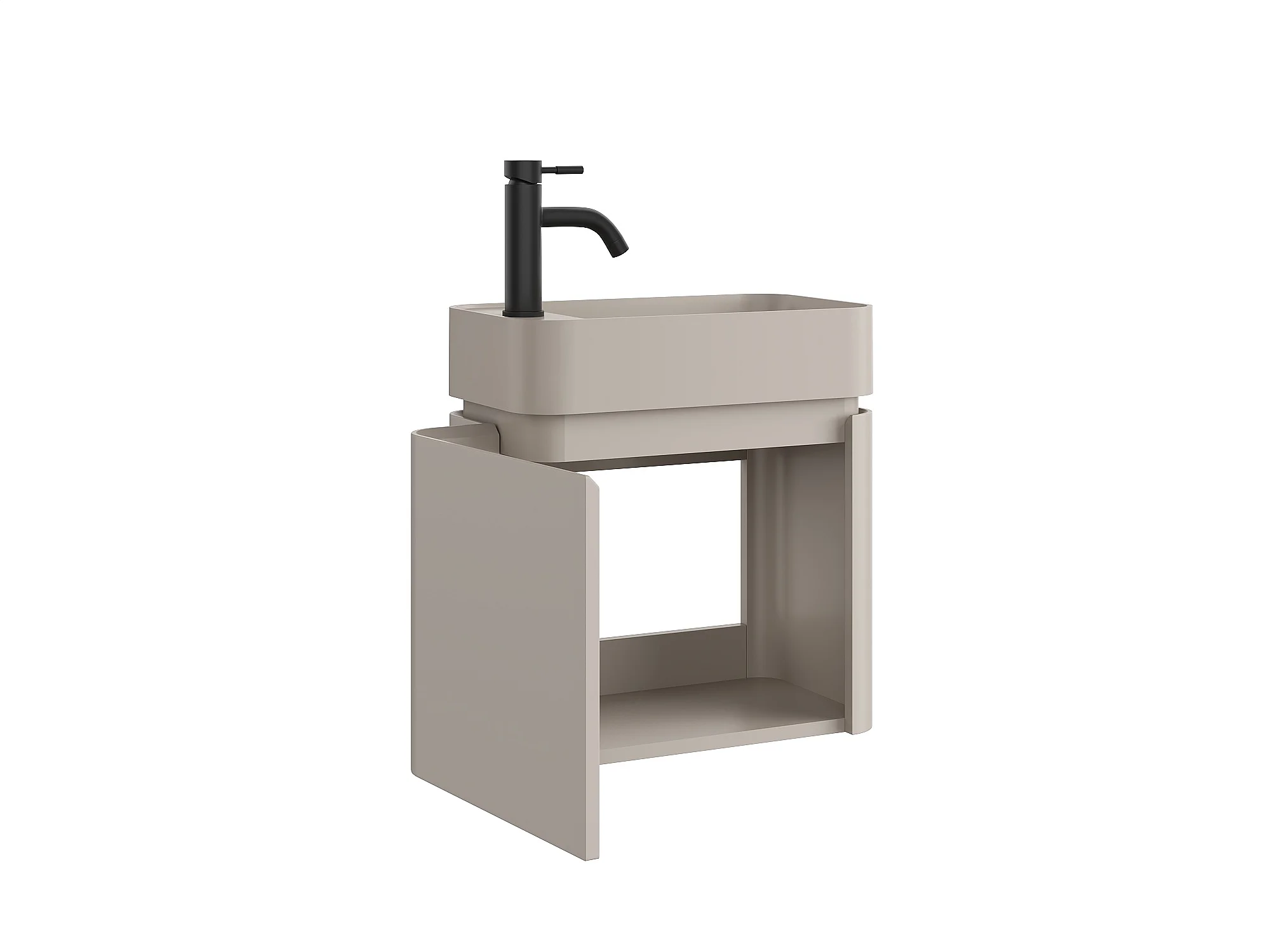 Móvel de lavatório suspenso com lavatório de encastrar e torneira - Bege mate - 45 x 25 x 48 cm - JONSA