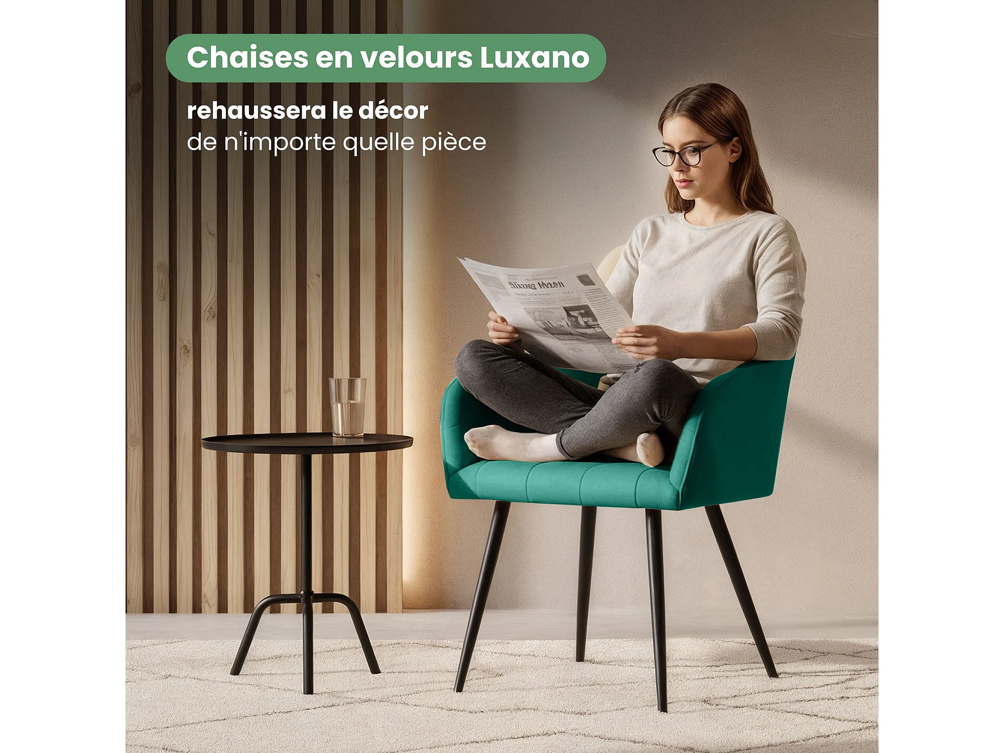 Juego de 6 sillas acolchadas LUXANO Verde Botella patas negras