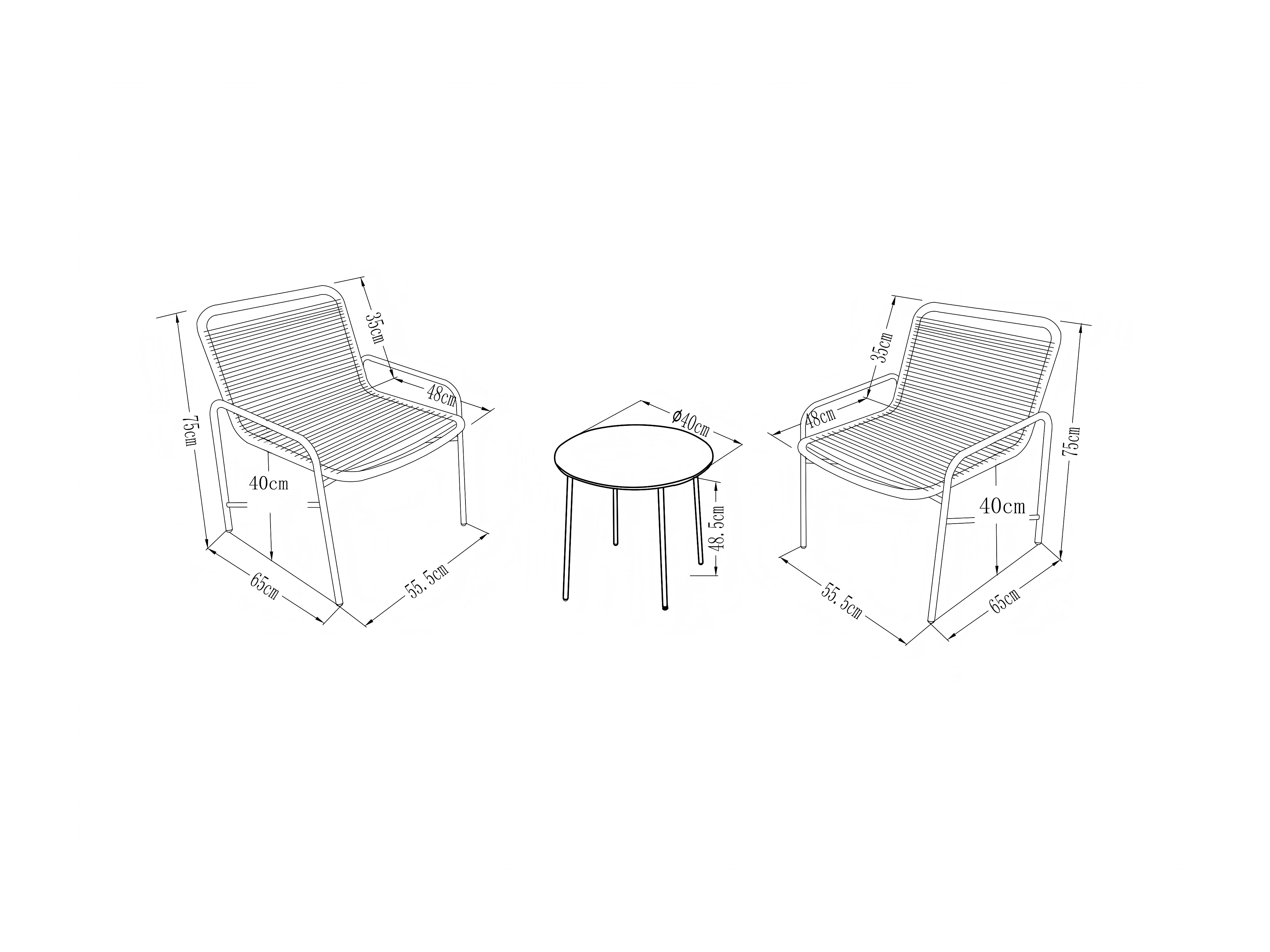 Conjunto de jardim em metal e resina entrançada - 2 poltronas baixas e uma mesa de centro - Preto - KANAO de MYLIA
