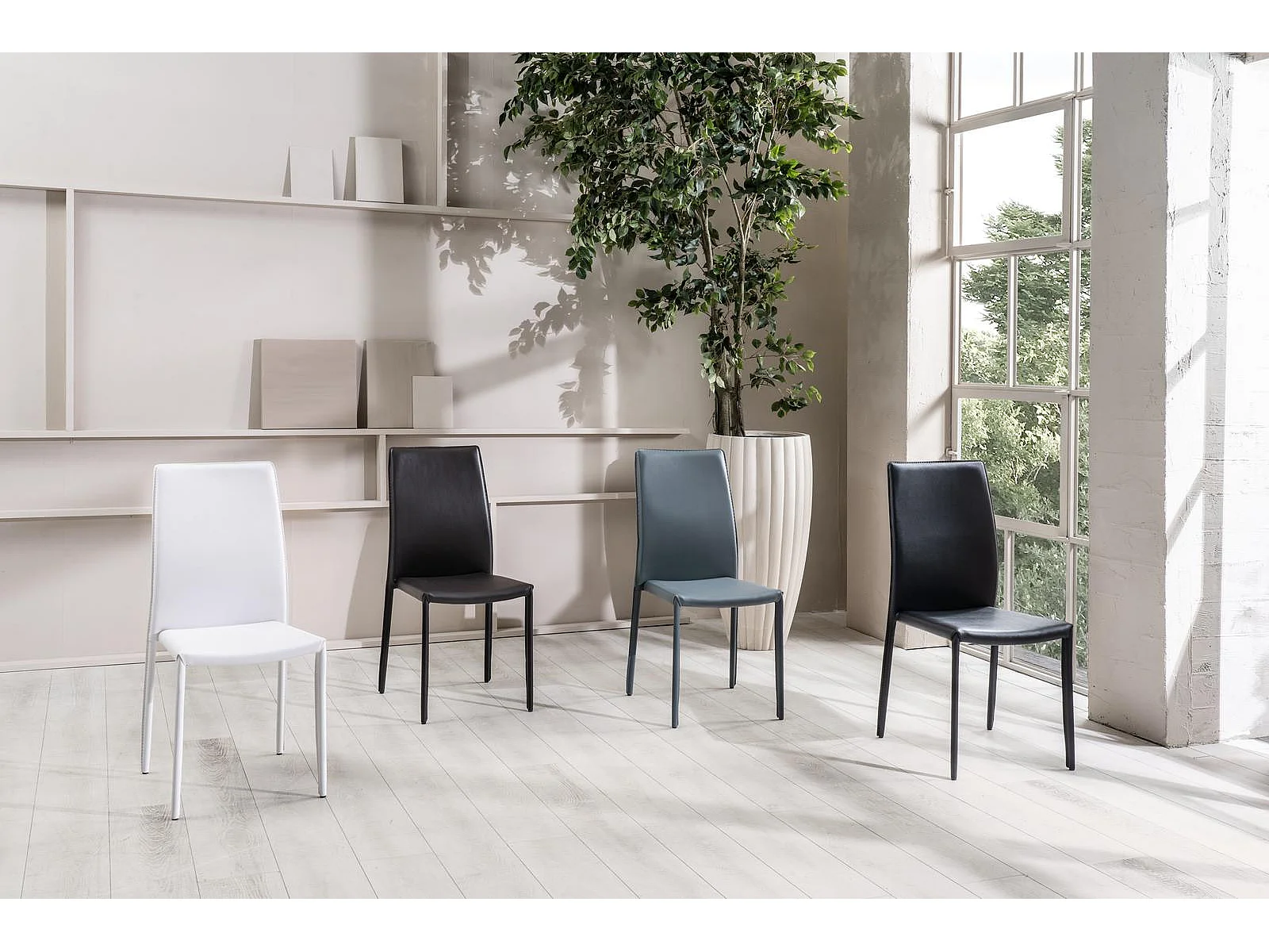 Kitty - Cadeira de couro sintético branco 4 peças