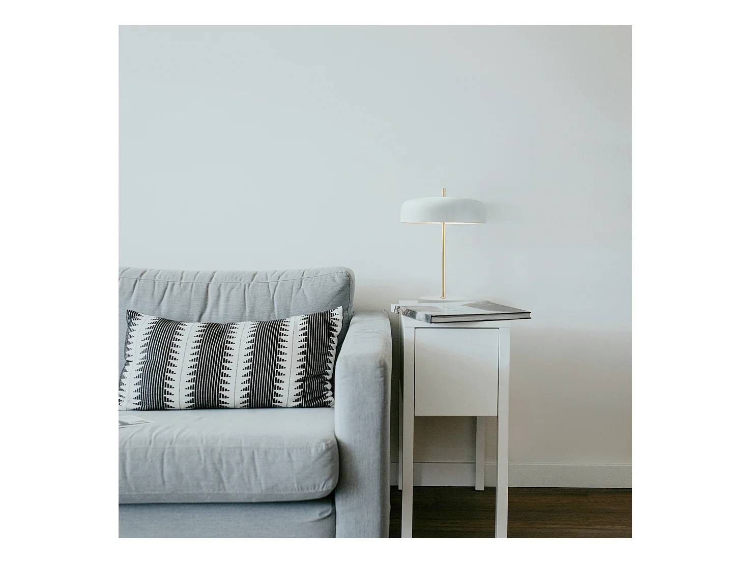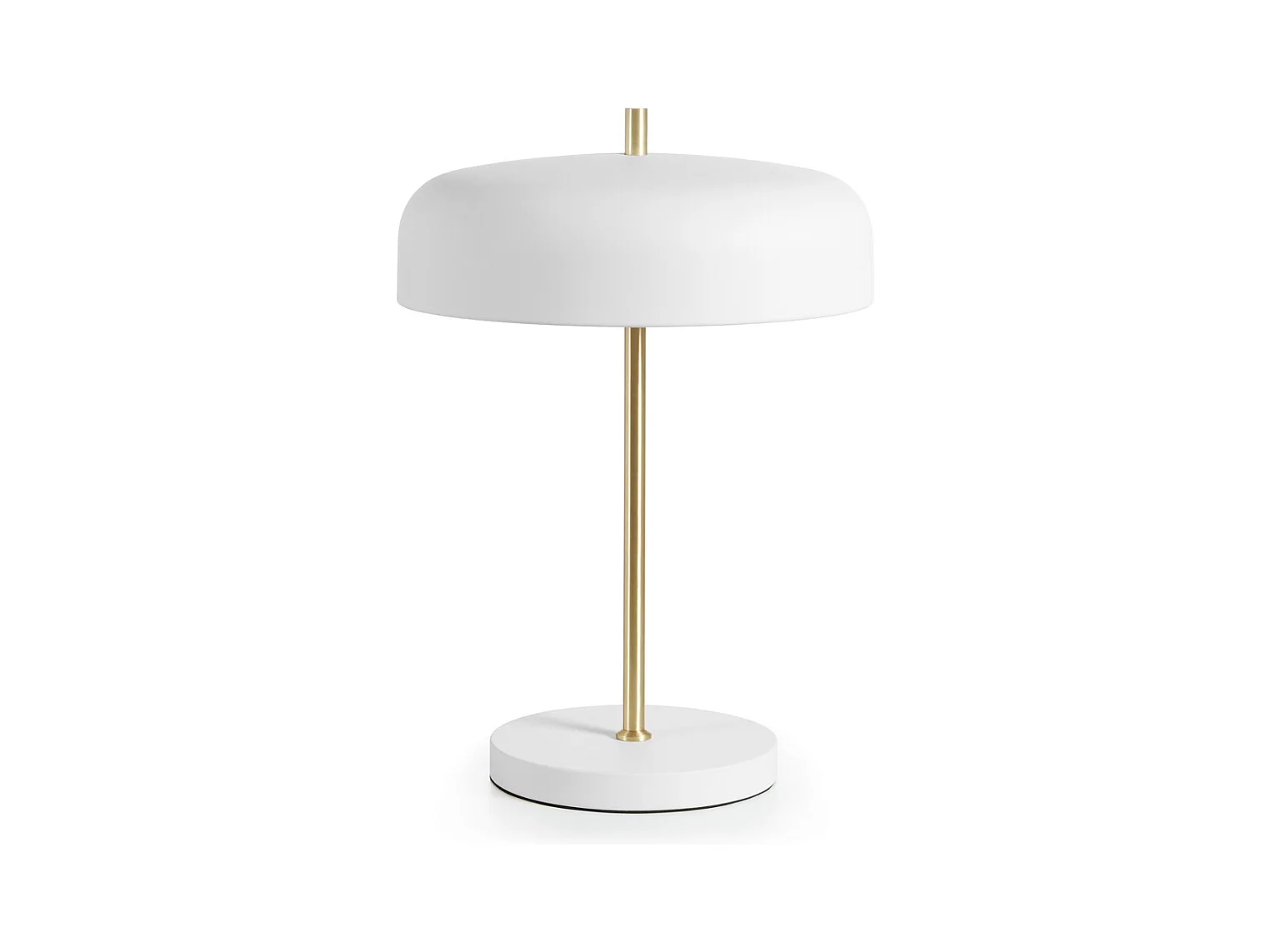 Mesa de apoio com base em metal dourado e tampo em mármore branco