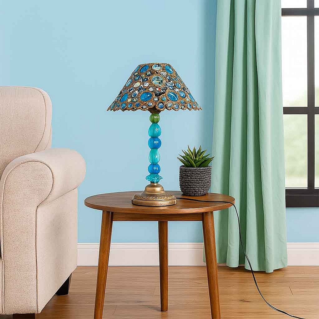 Lâmpada de metal azul com vidro acrílico colorido 30x47.5h cm