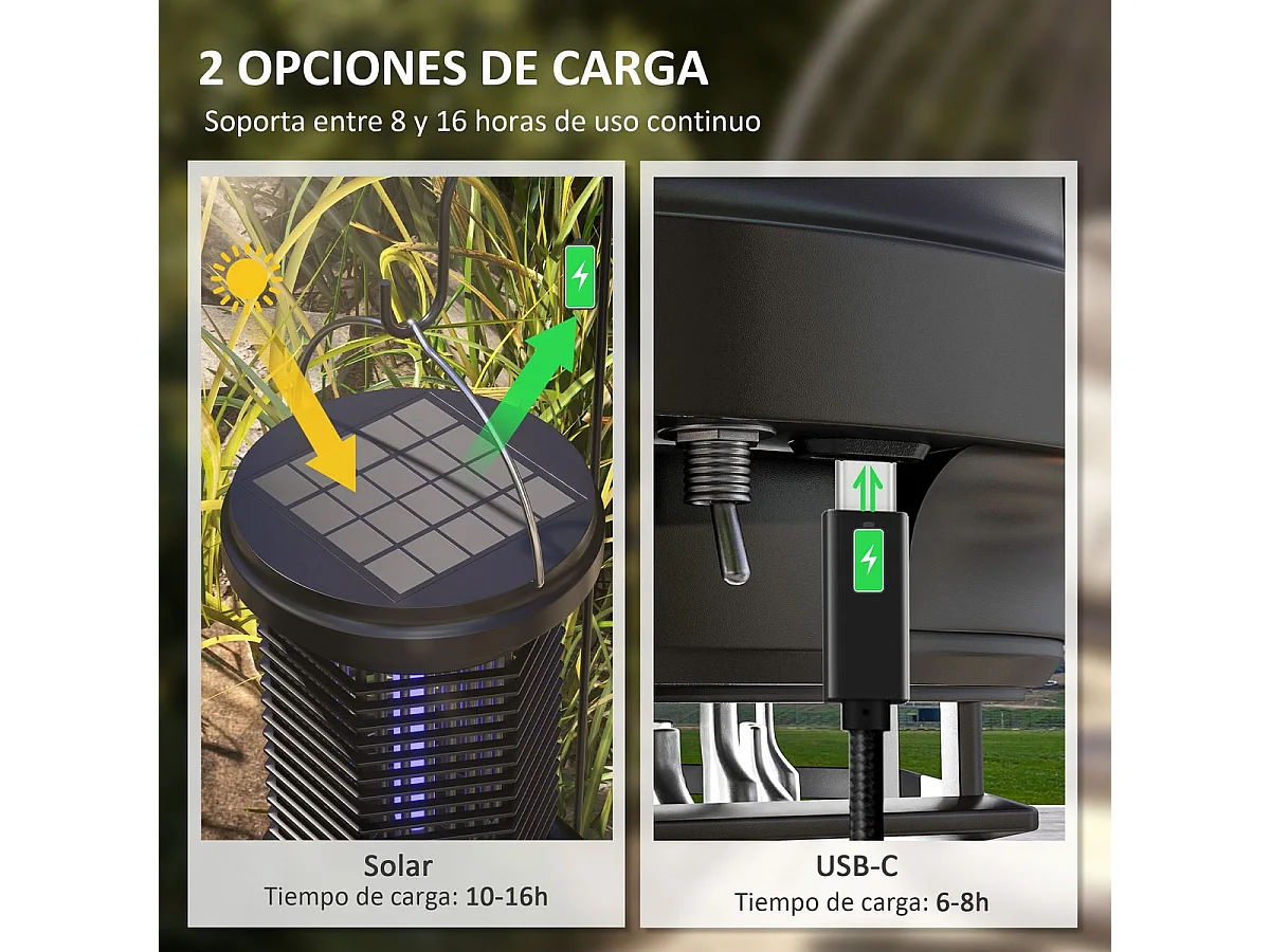Lâmpada Elétrica 2 em 1 Mata Mosquitos com Luzes LED UV Recarregável para Jardim e Varanda