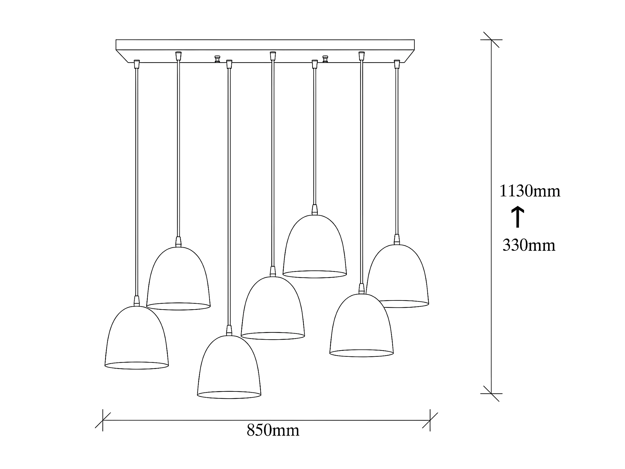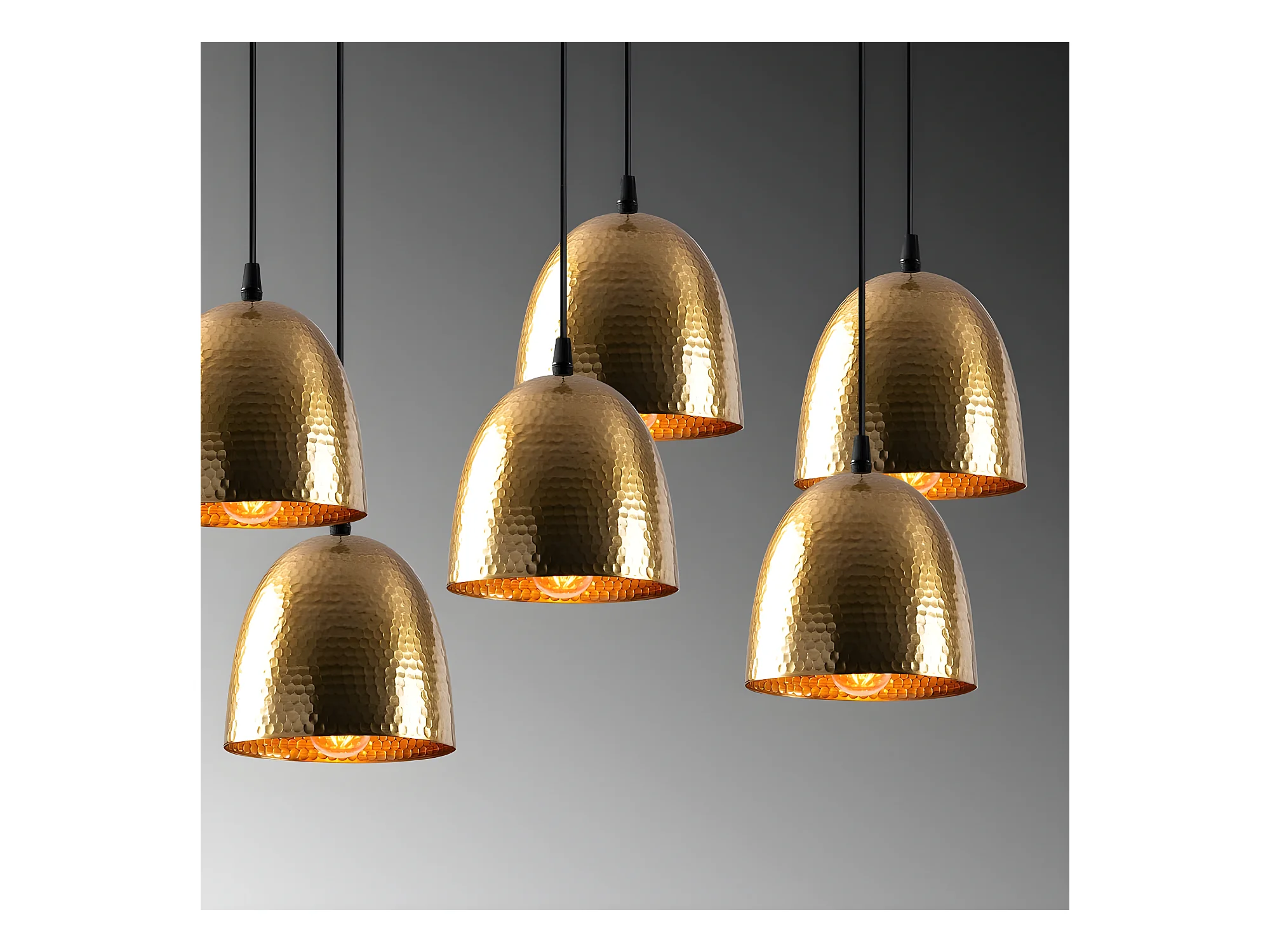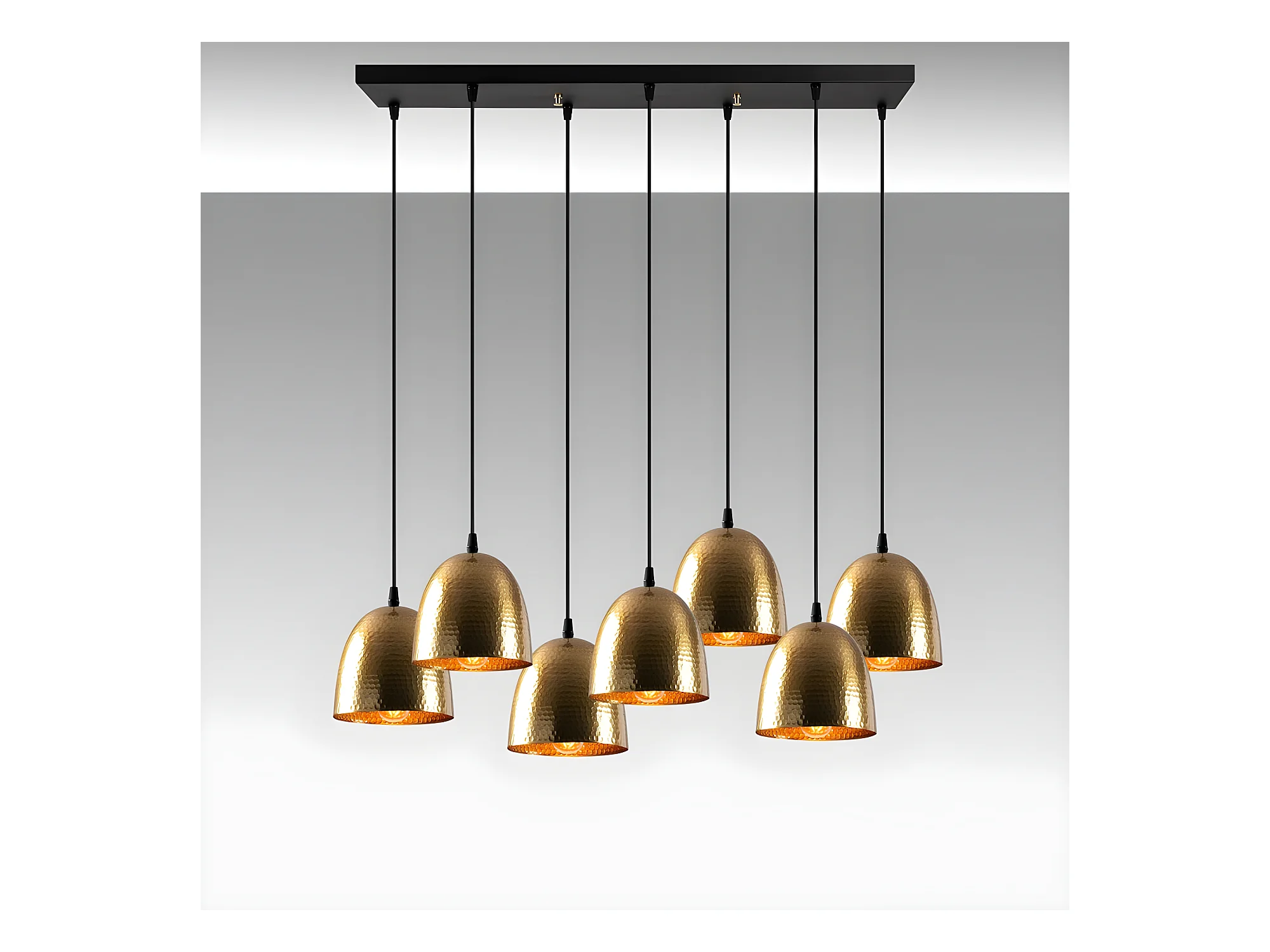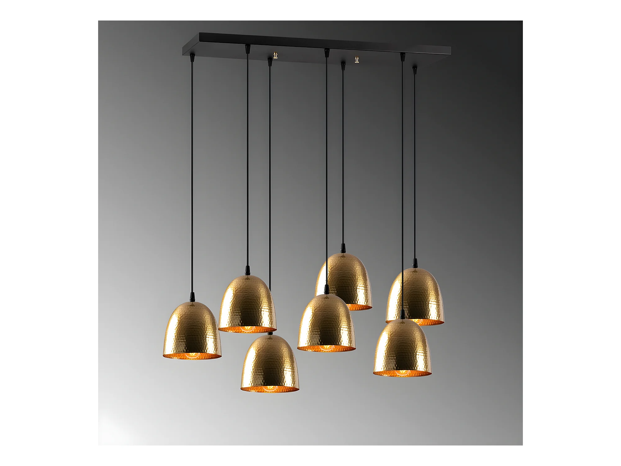 Lâmpada pendente linear Asney com 7 tons em ouro antigo efeito em relevo 7xE27