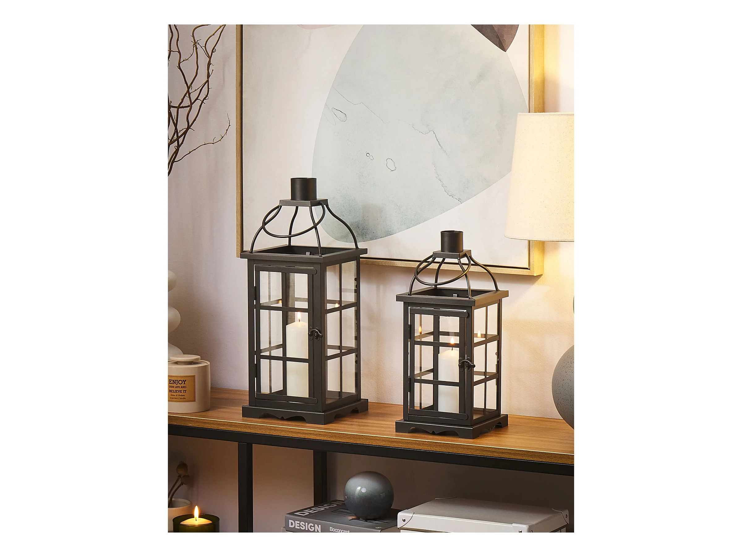 Conjunto de 2 lanternas LOMBOK Metal 38 cm Preto