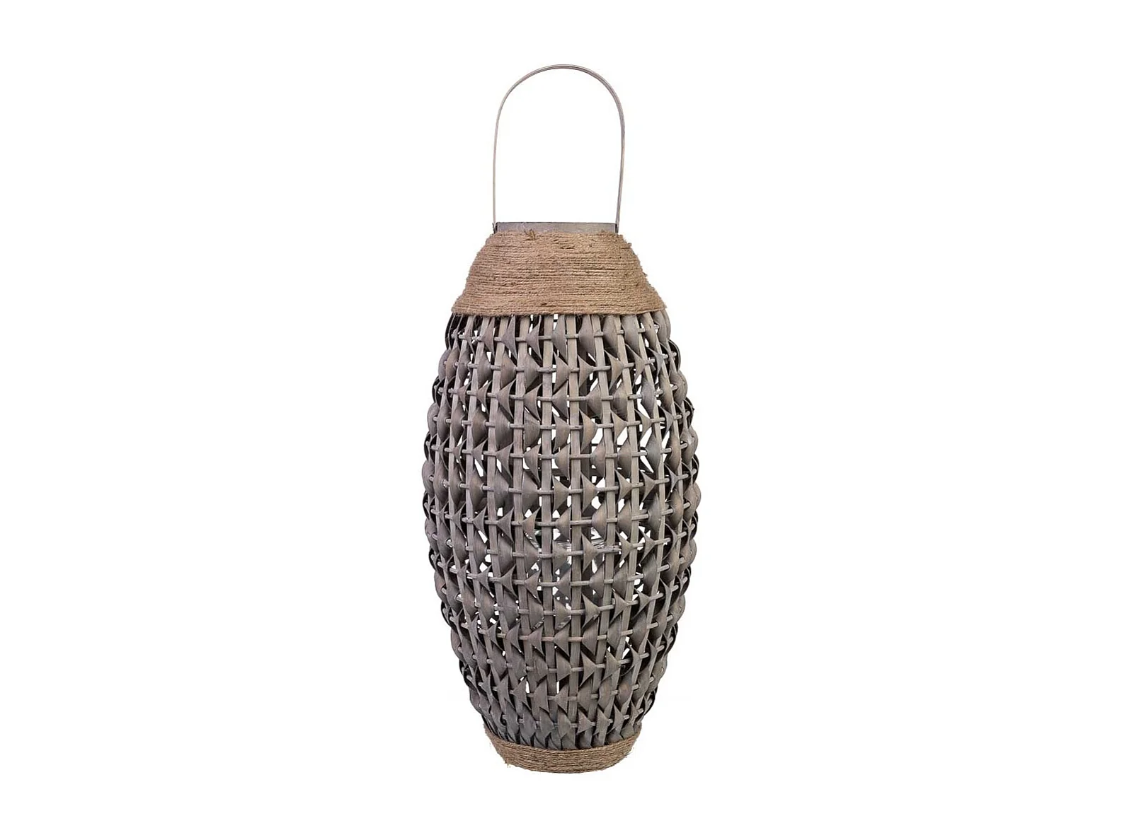 Lanterna em bambu e madeira com porta-velas em vidro D29x55h cm