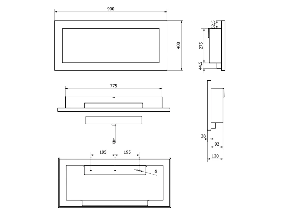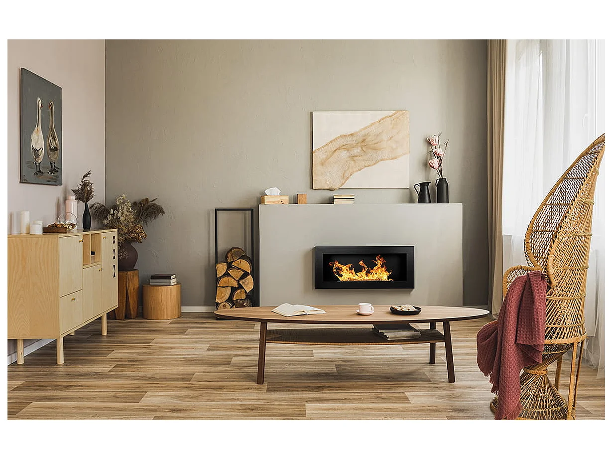Lareira a bioetanol Lucca Black, para parede ou embutida, C 90 x L 12 x A 40