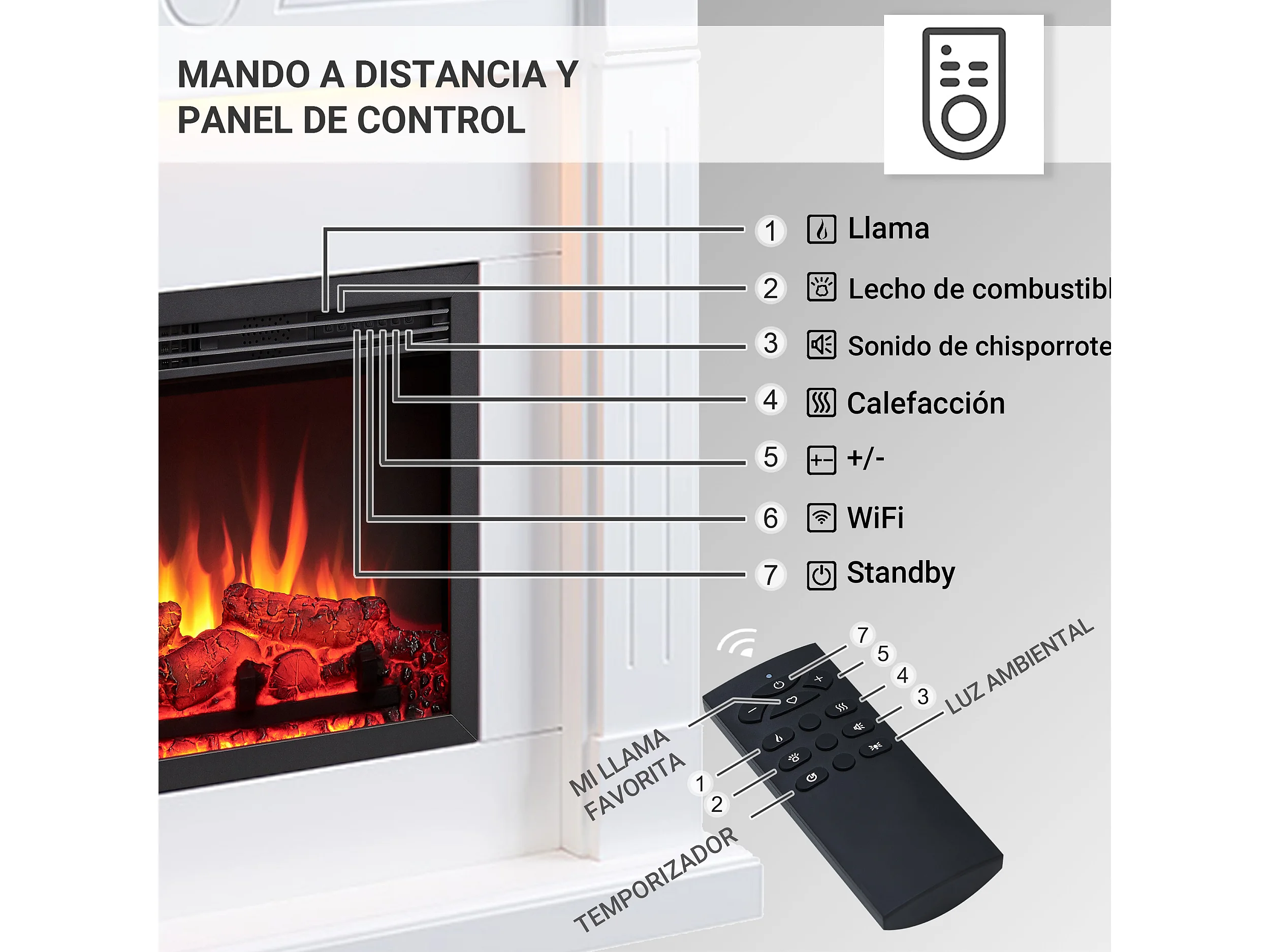 Lareira elétrica BALDERIA Hikaru - Lareira de chão - Branca