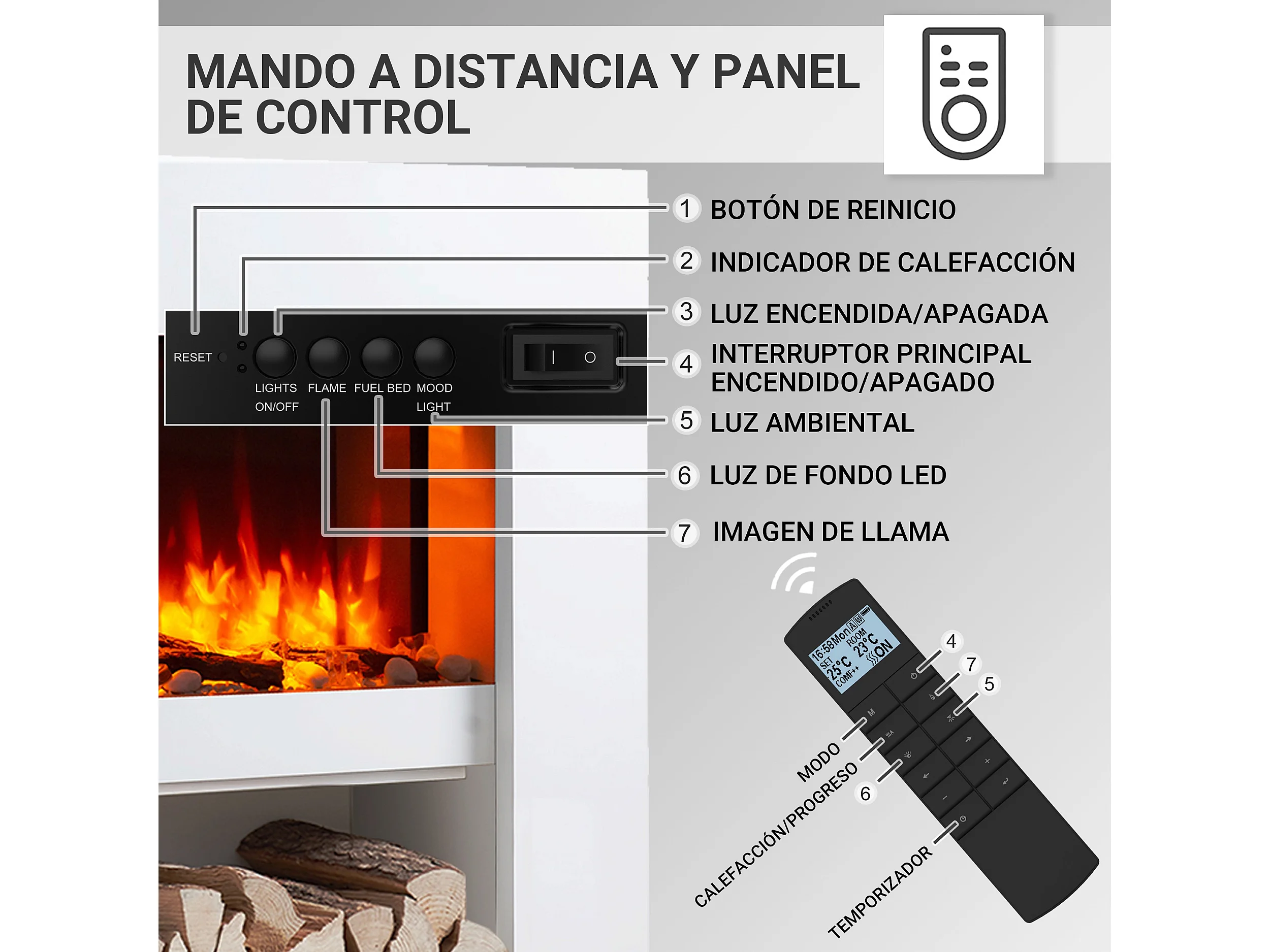 Lareira elétrica BALDERIA Naran - Lareira de chão - Branca