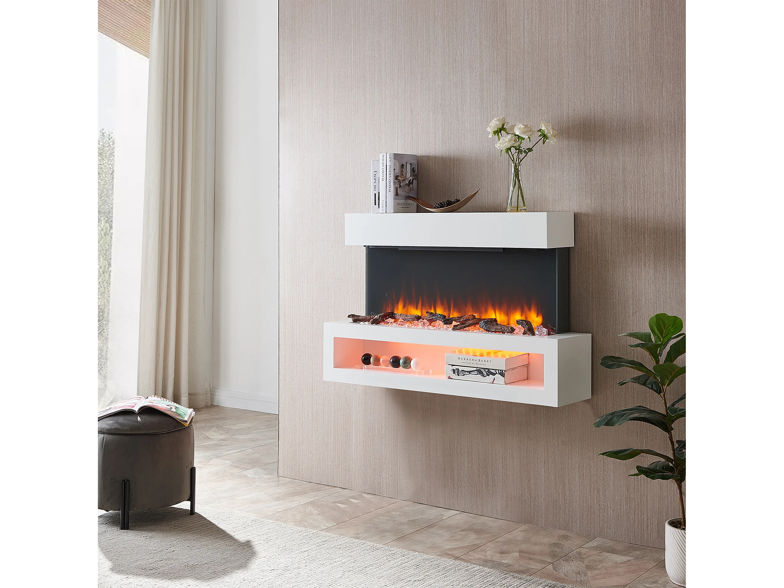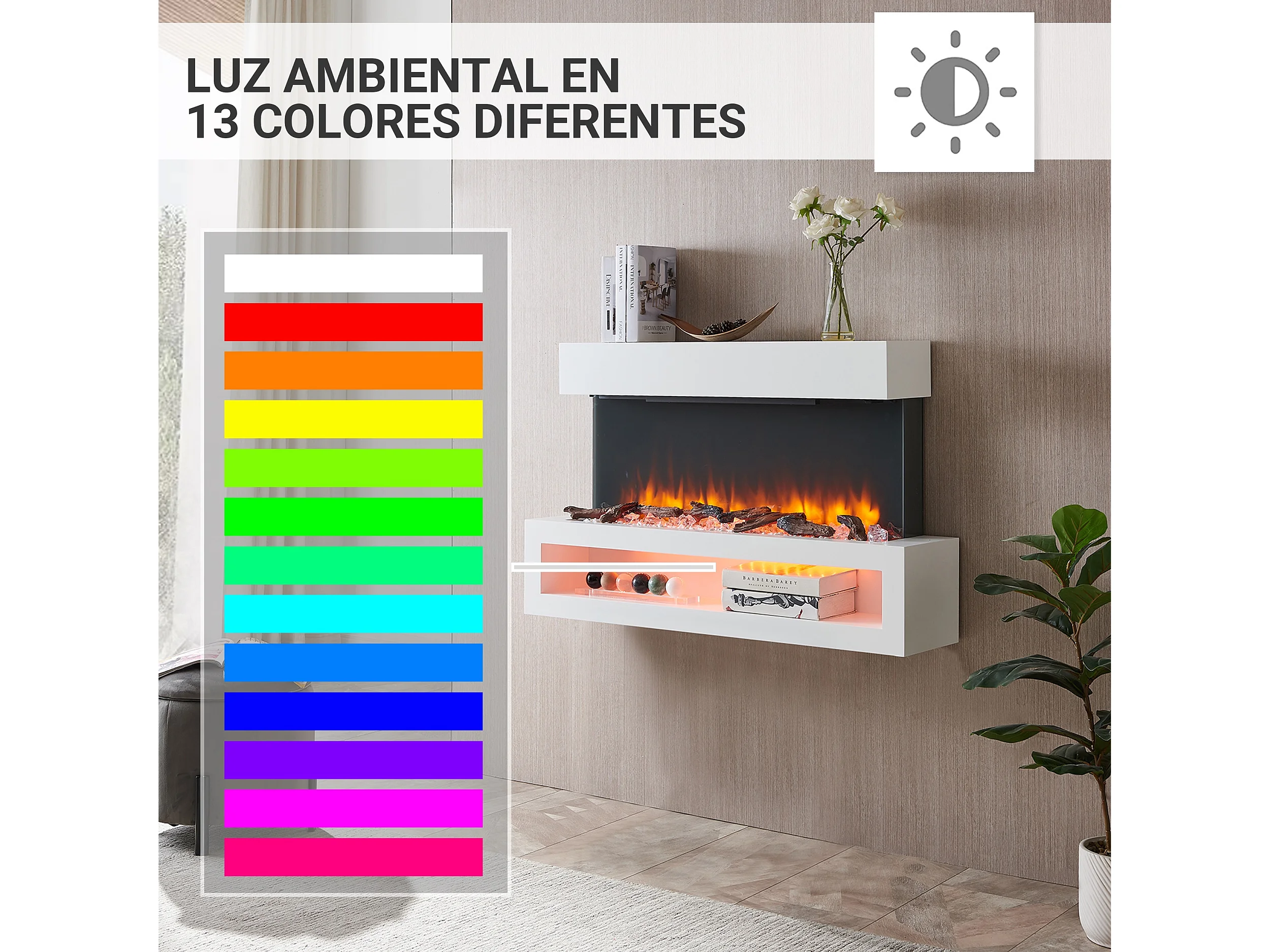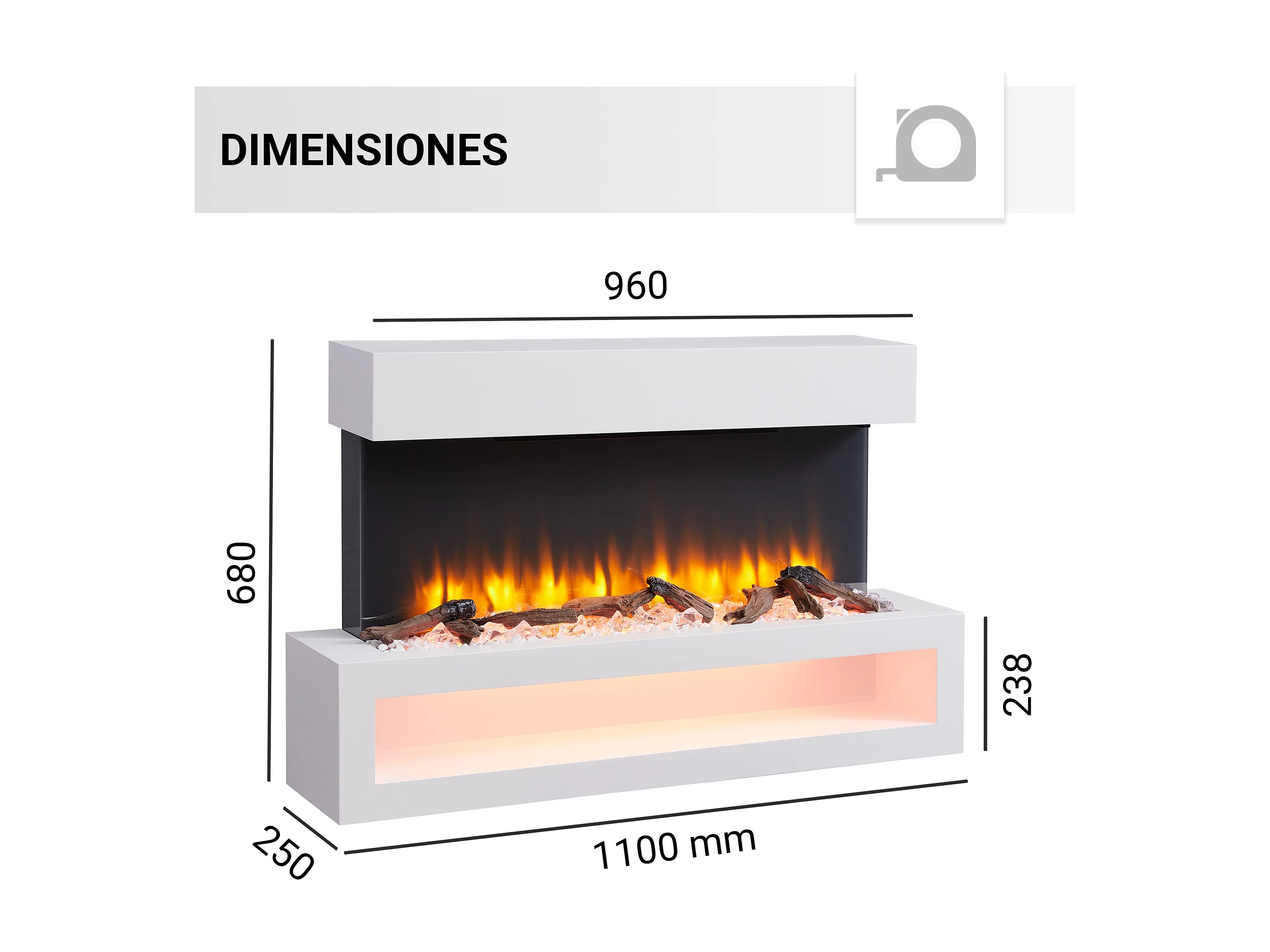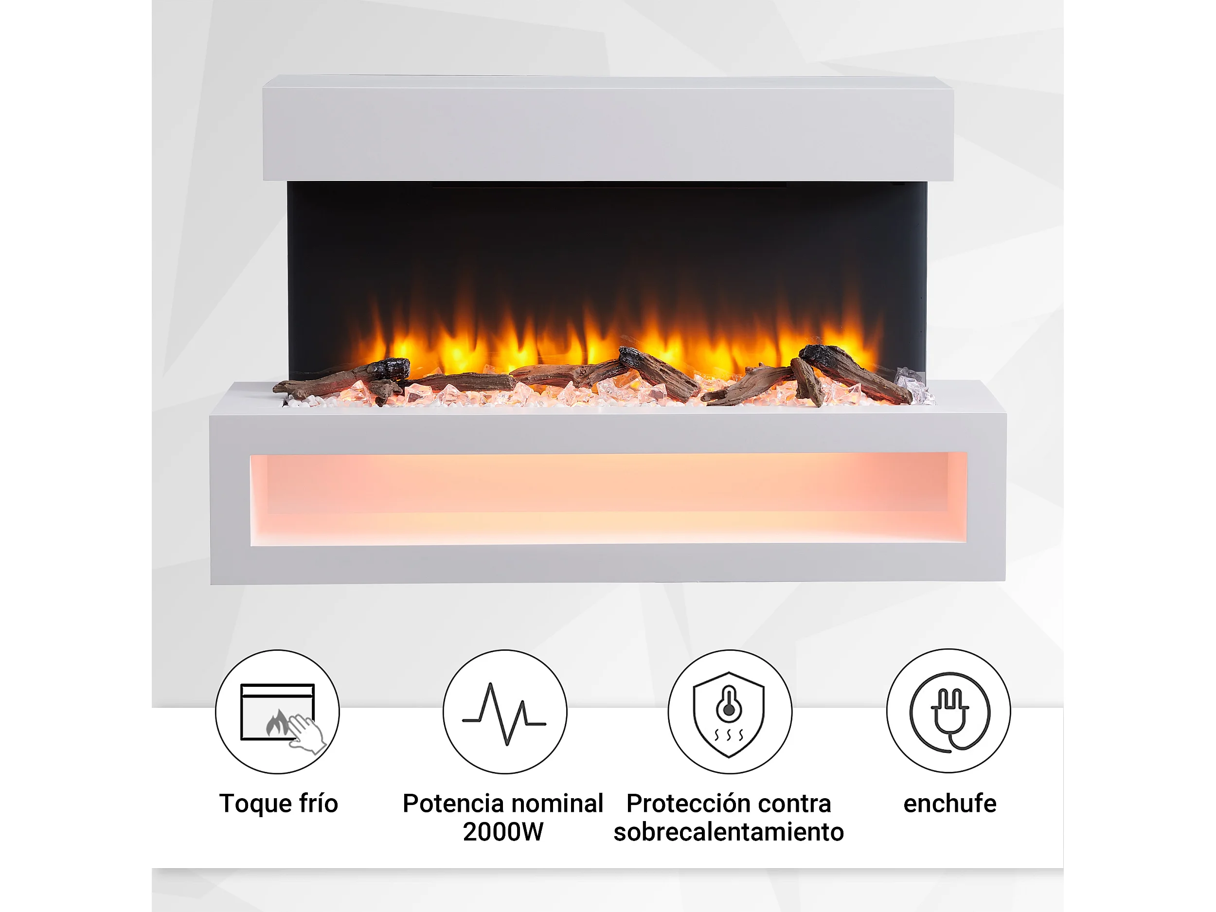 Lareira elétrica BALDERIA Nikos - Lareira de parede, 2000 W - Branco