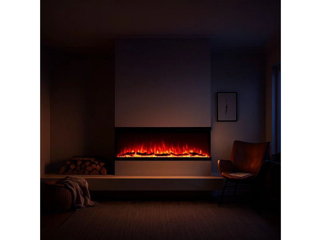 Lareira elétrica de parede, lareira embutida de 3 lados, BOSTON130 C127 x P20 x A44