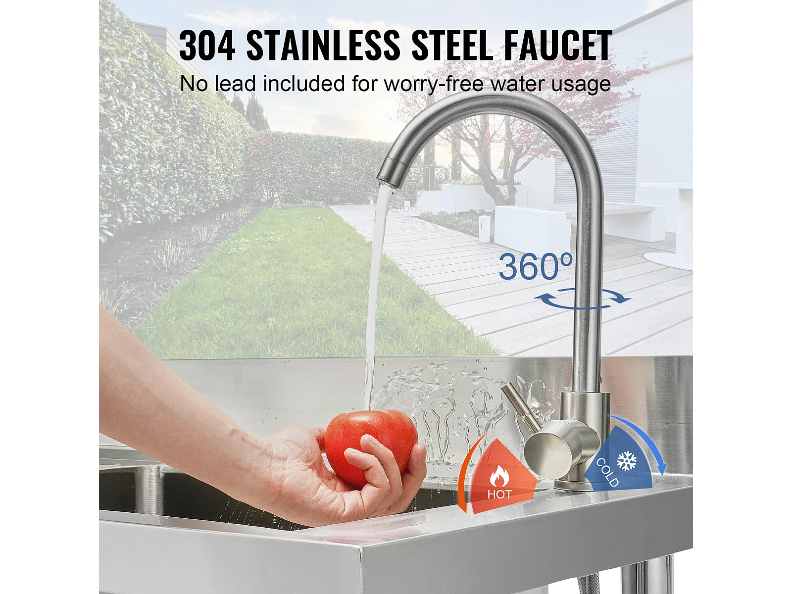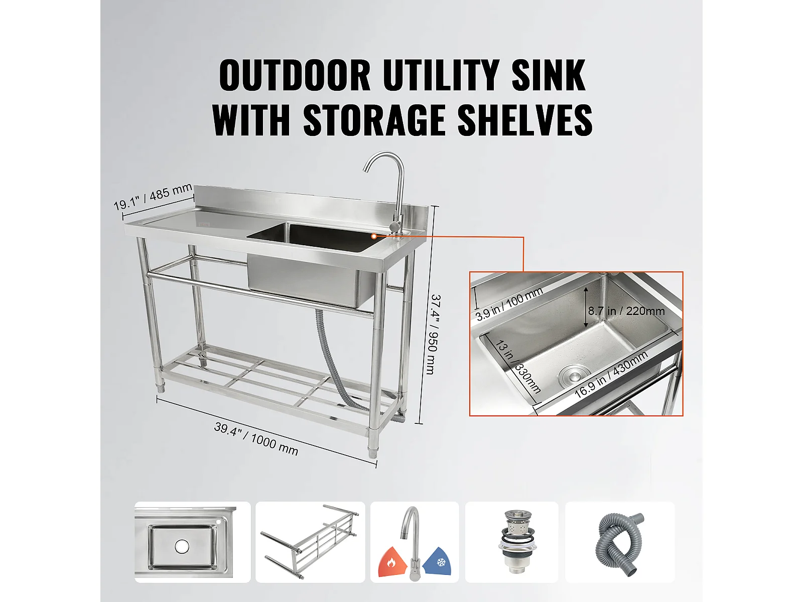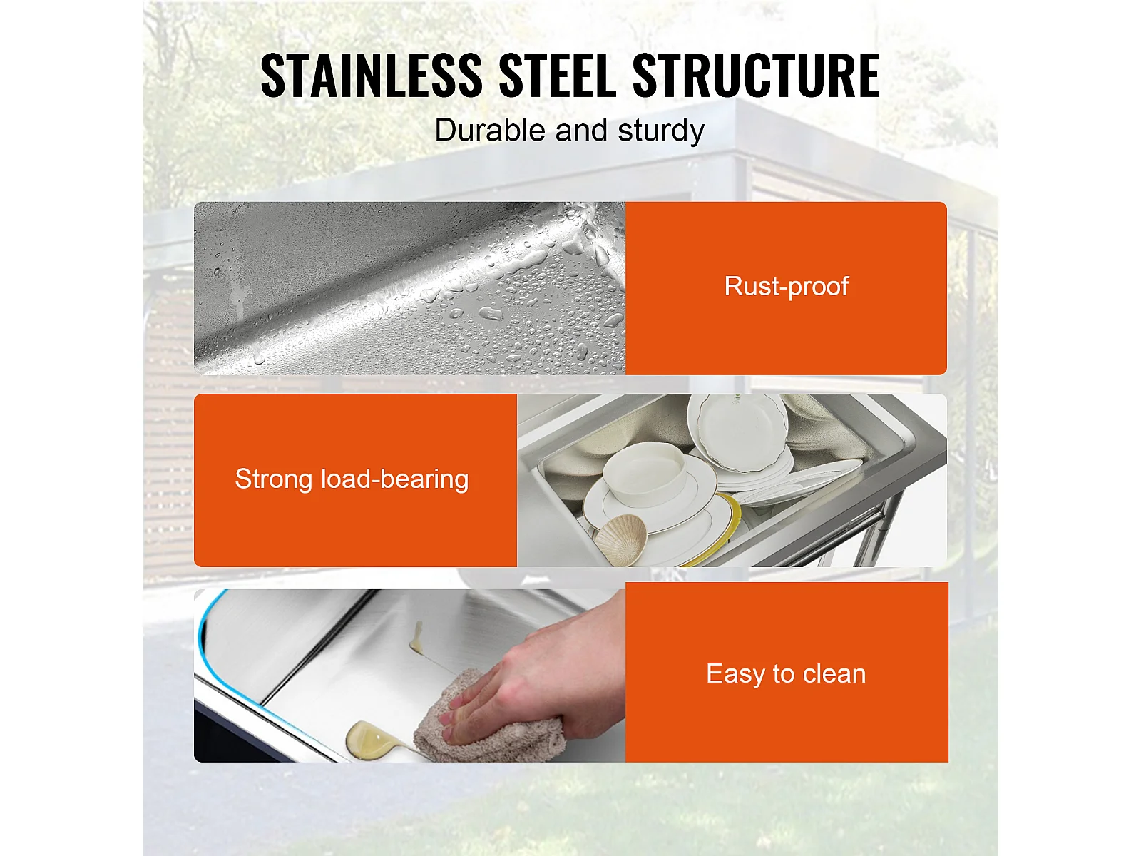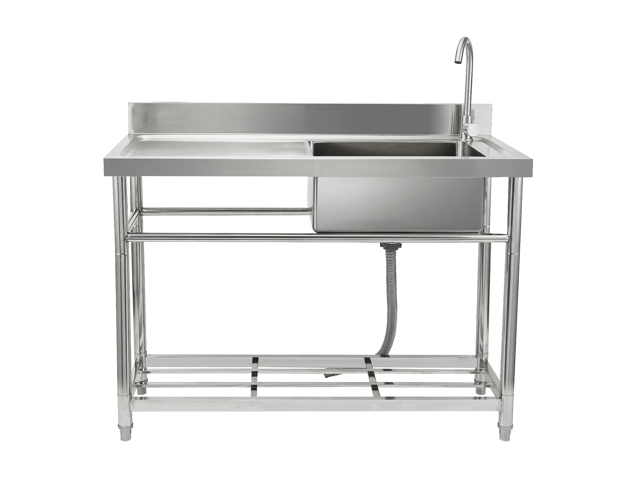 Lava-loiça Comercial para Cozinha e Preparação de Cuba Única SucceBuy com Bancada de Trabalho 100 x 48,5 x 95 Cm