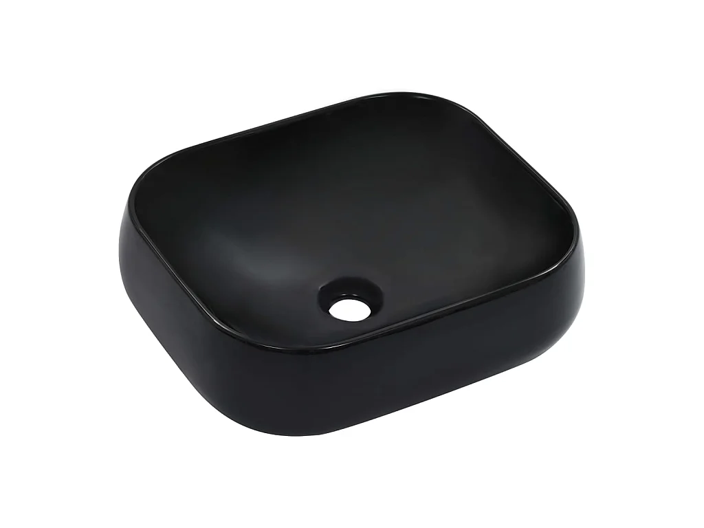Lavatório cerâmica redondo com furo para torneira, preto, quadrado PT401454