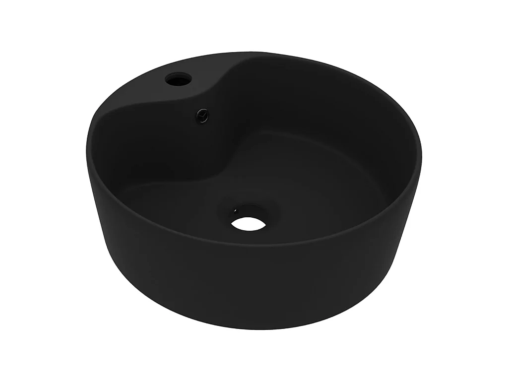 Lavatório cerâmica redondo com furo para torneira, preto, quadrado PT401454