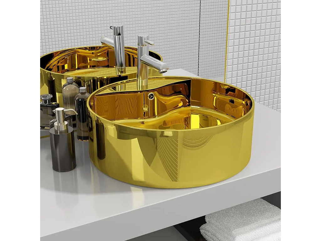 Lavatório com extravasamento 46,5 x 15,5 cm Cerâmica Ouro