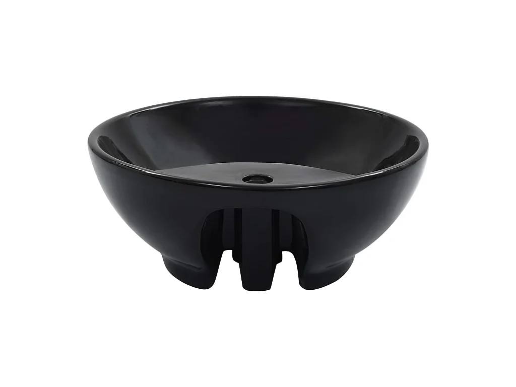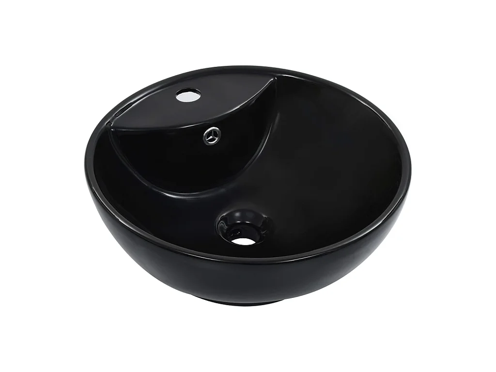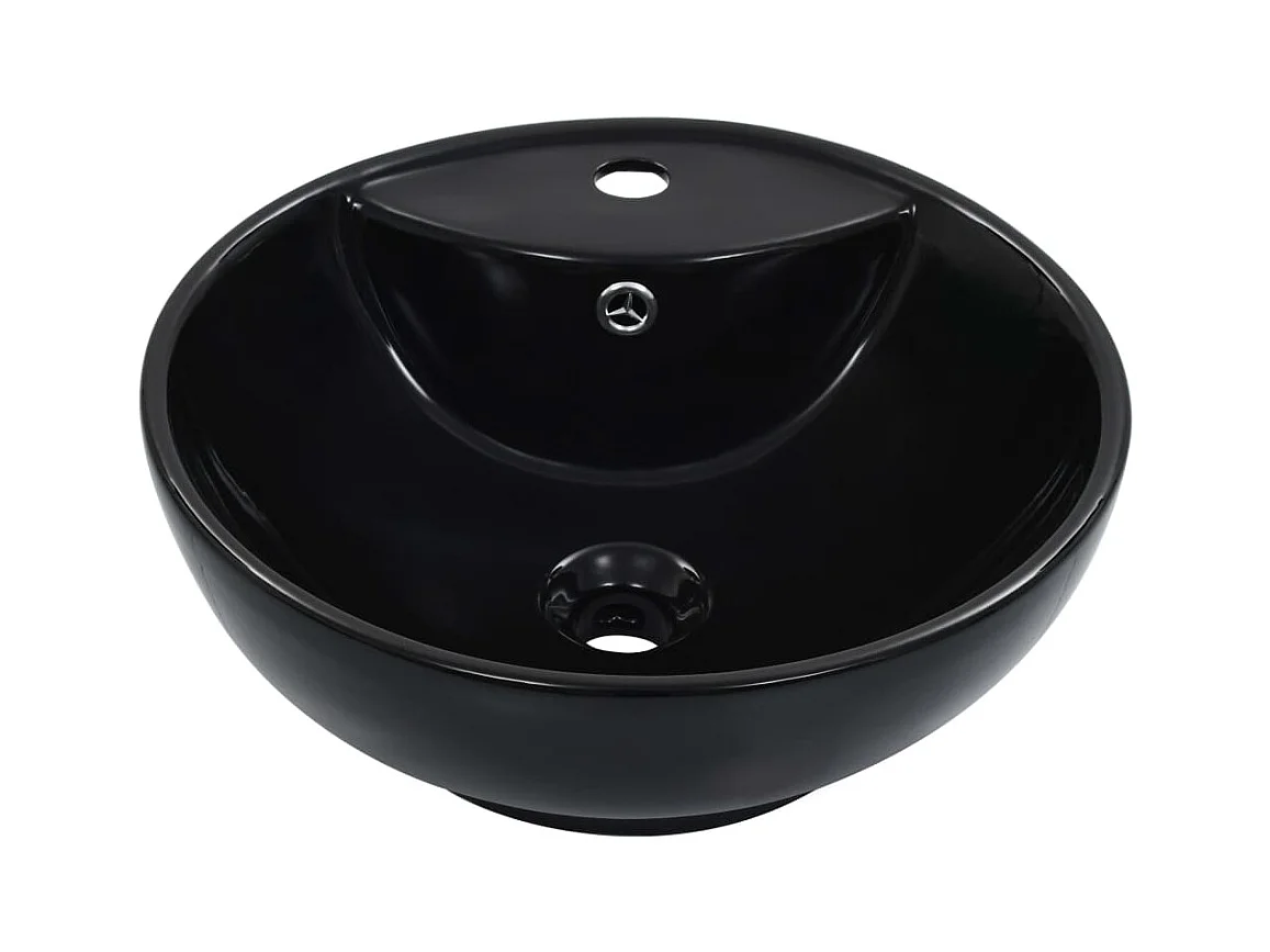 Lavatório cerâmica c/ orifícios para torneira/transbordo redondo preto PT210107