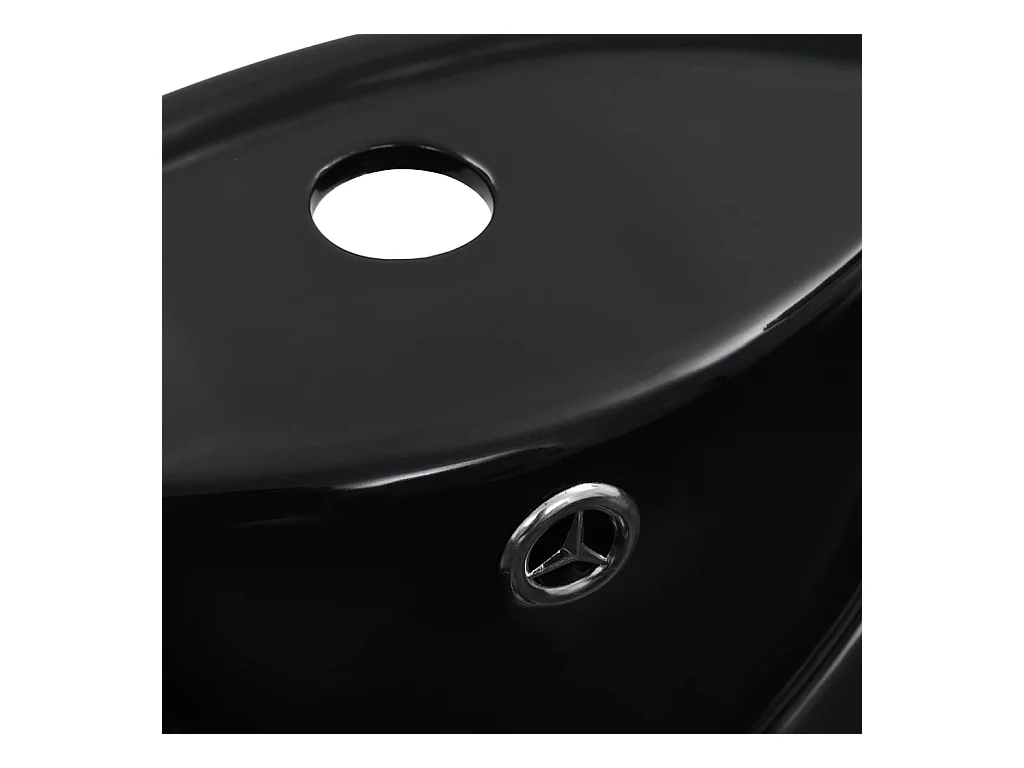 Pia cerâmica e torneira/furo transbordo oval preto PT206254