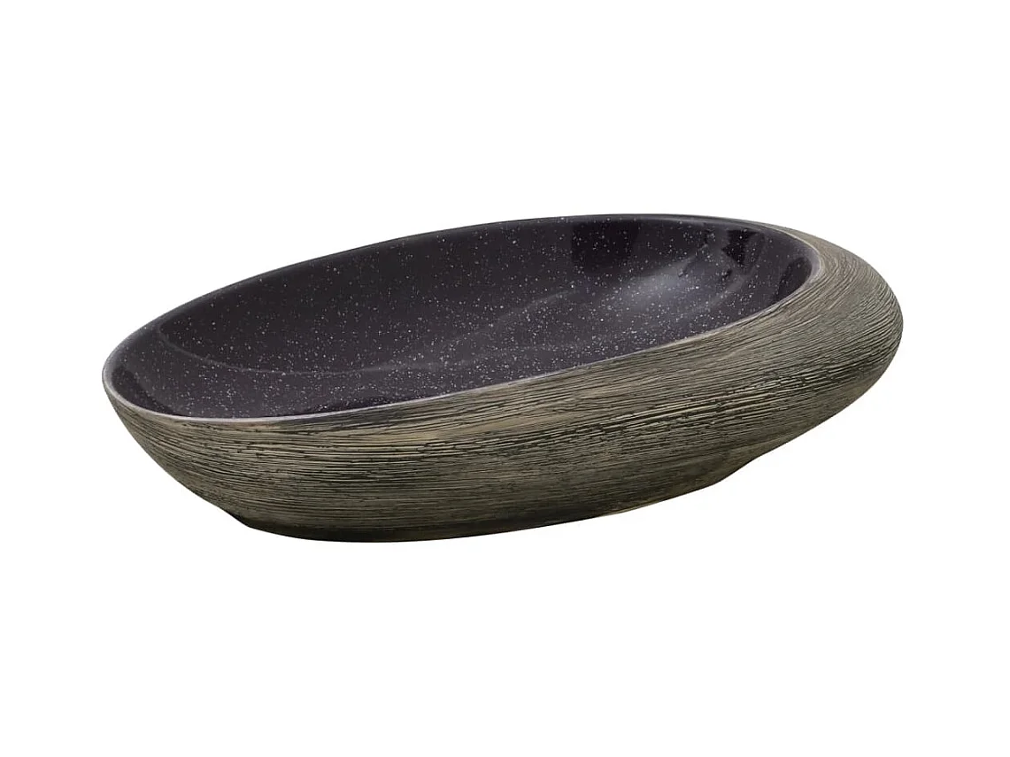 Lavatório de bancada oval 59x40x14 cm cerâmica areia e castanho PT587079