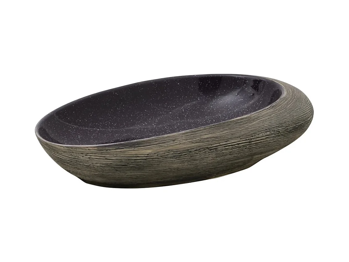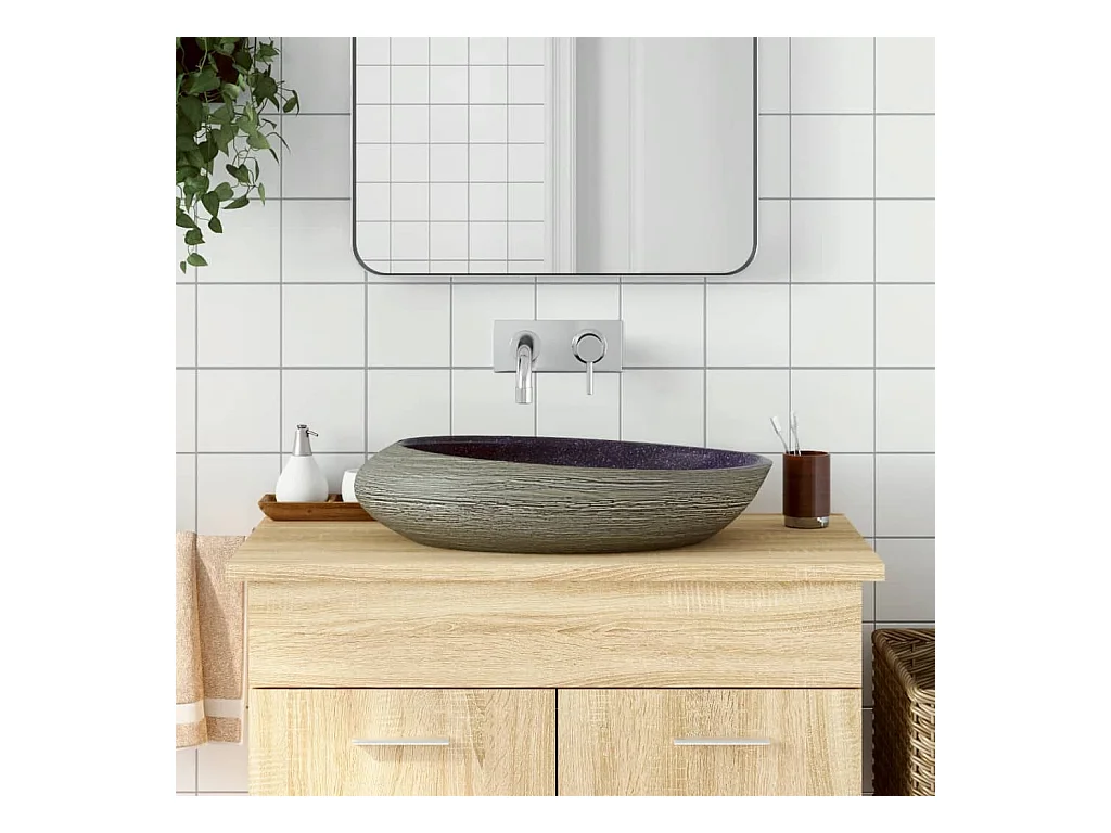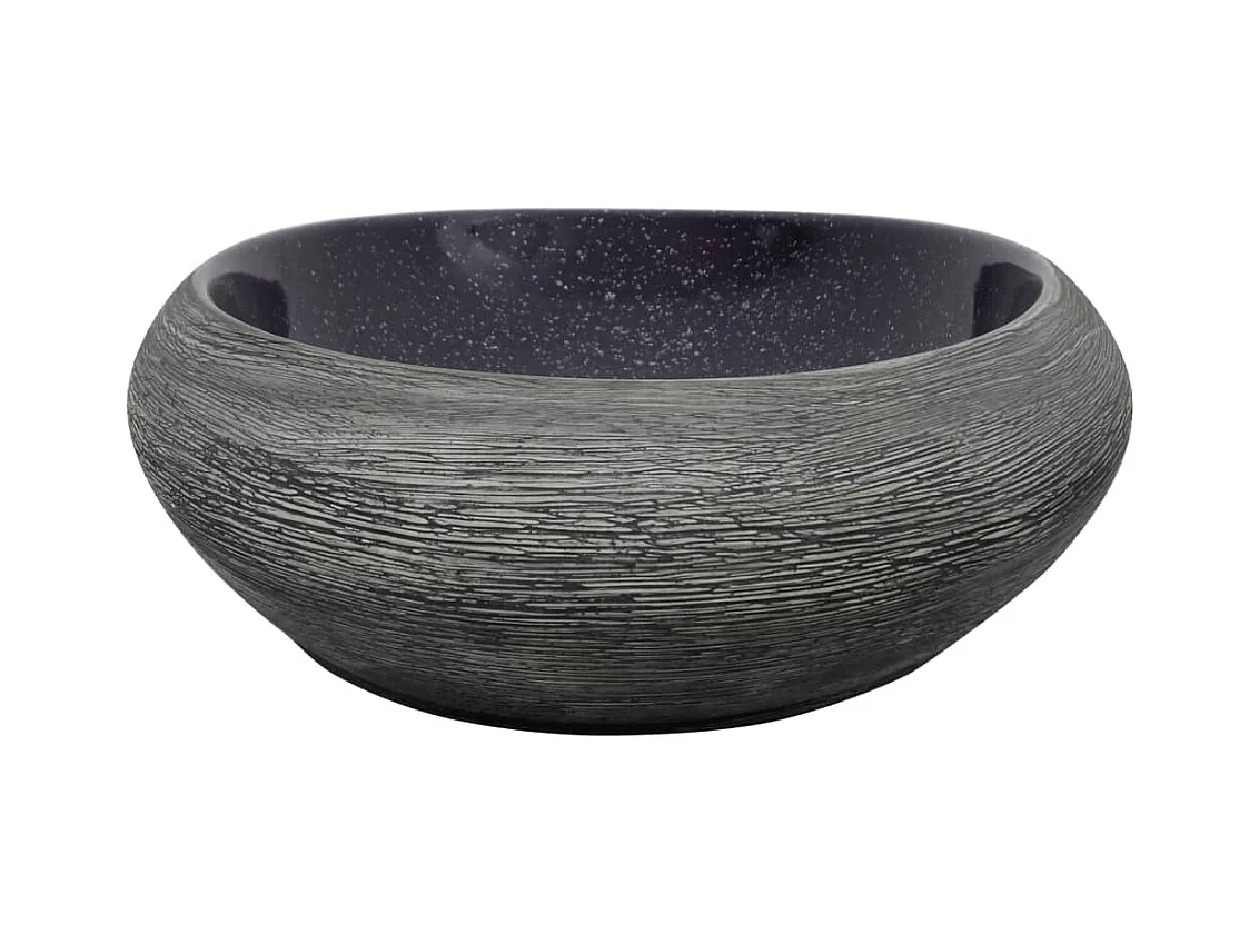 Lavatório de bancada oval roxo e cinza 59x40x14 cm cerâmica