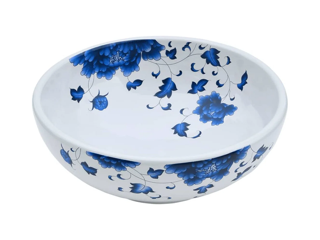 Pia de bancada redonda Φ41x14 cm cerâmica azul e branco PT319678