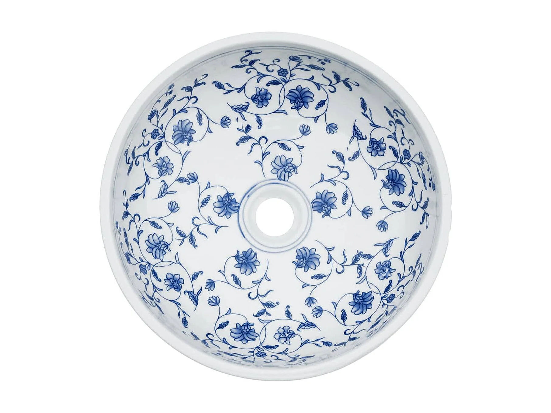 Pia de bancada redonda Φ41x14 cm cerâmica azul e branco PT156411