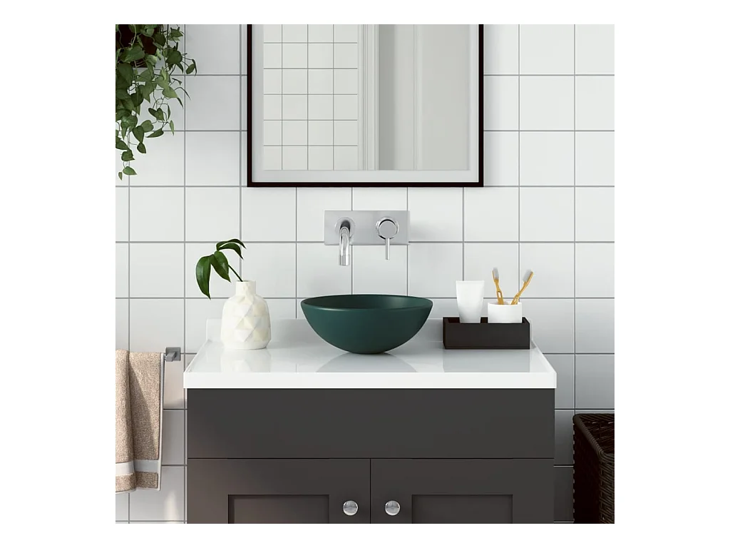 Lavatório luxuoso redondo 40x15cm cerâmica verde-escuro mate PT775225