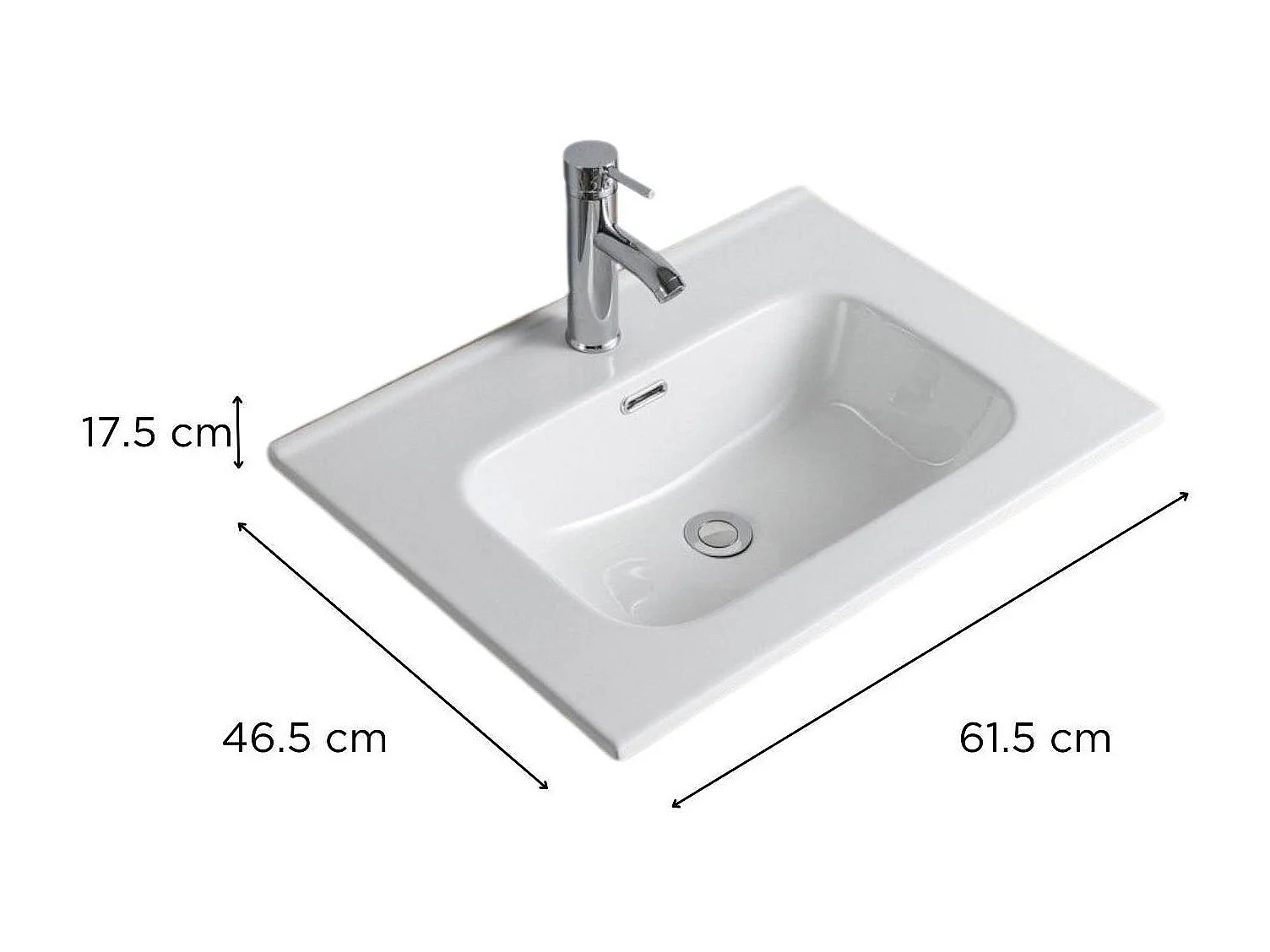 Lavatório de embutir retangular em cerâmica branca 61,5 x 46,5 cm ILA