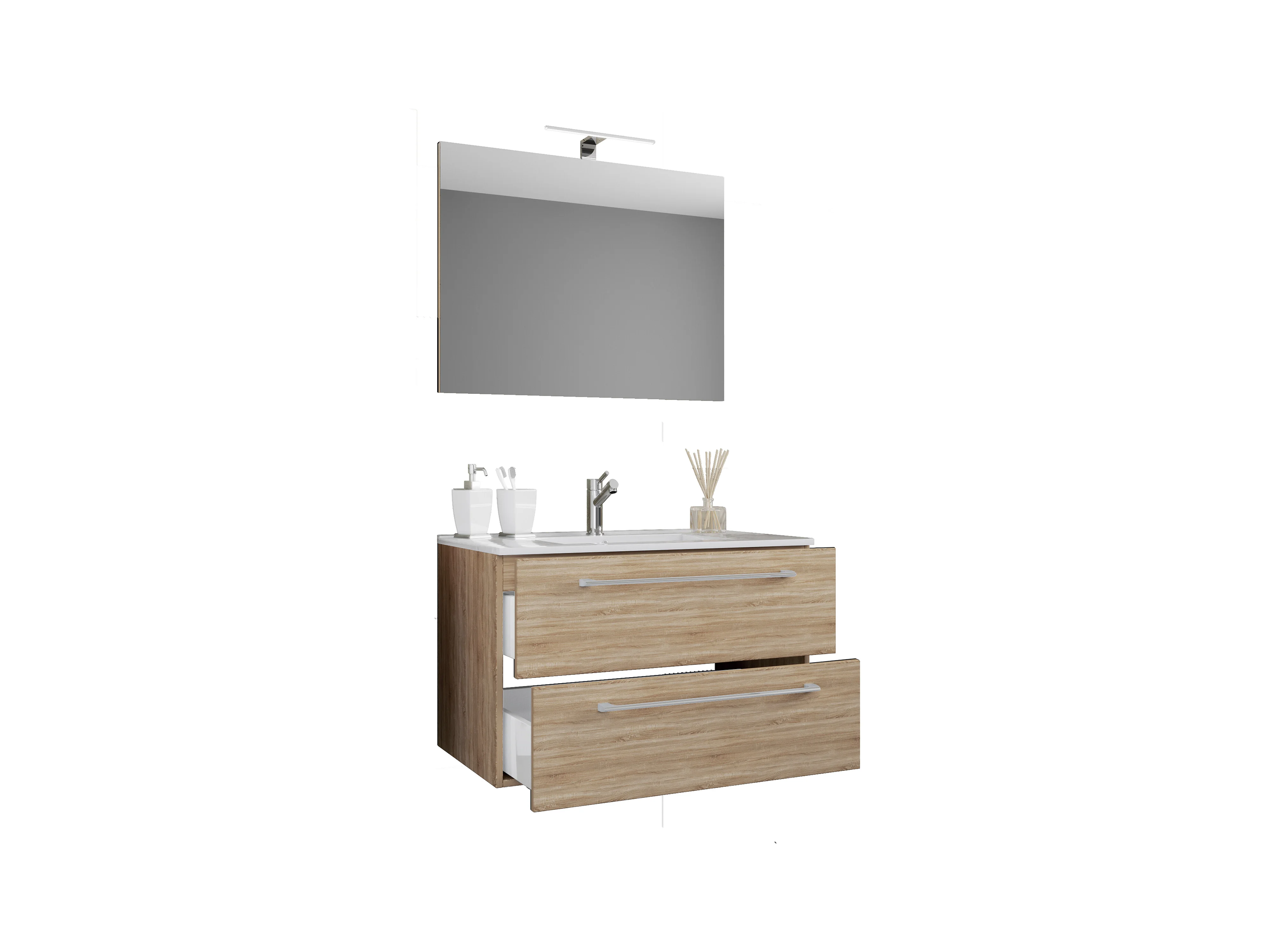VCM 4 pcs Lavatório | lavatório menor largura do armário 80 cm | Móveis de casa de banho com gavetas Portas rotativas Gabinete de espelho | Badinos (carvalho mel)