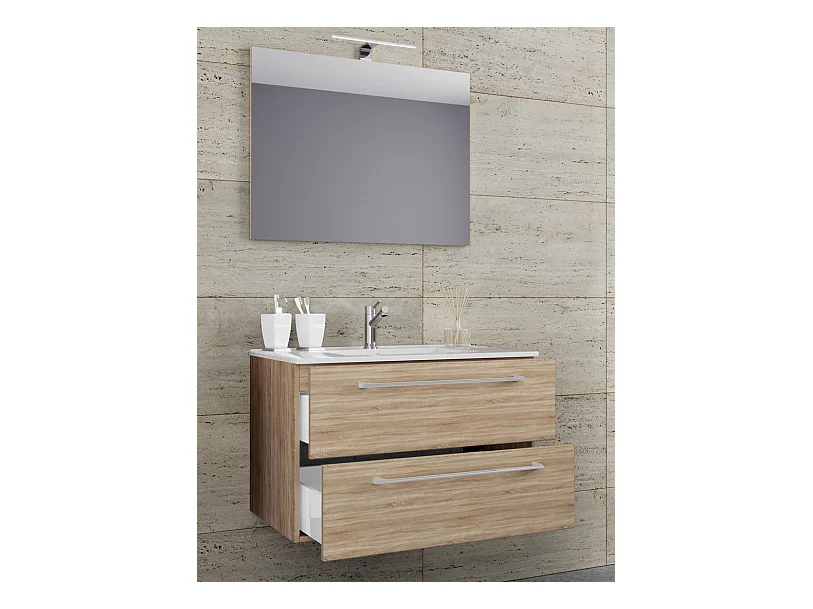 VCM 5pcs Lavatório | lavatório menor largura do armário 60 cm | Móveis de casa de banho com gavetas Portas rotativas Gabinete de espelho | Badinos (Sonoma oak)